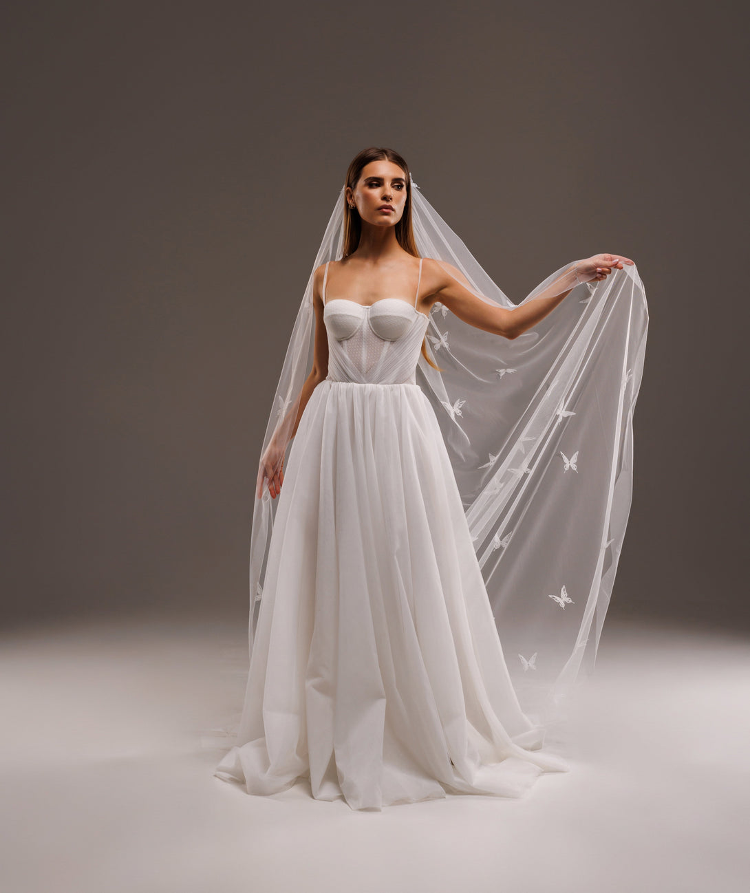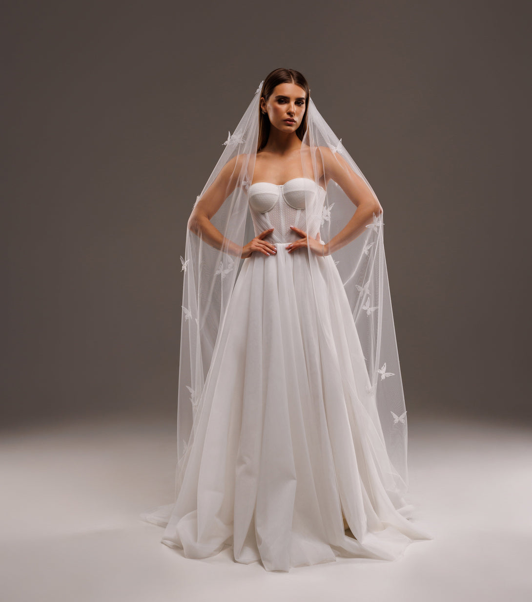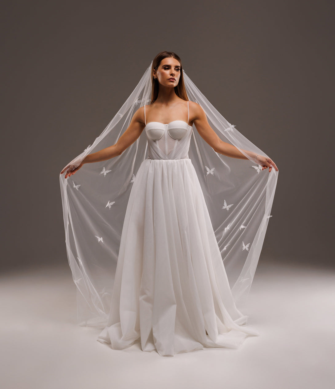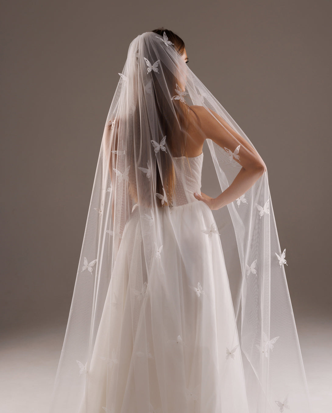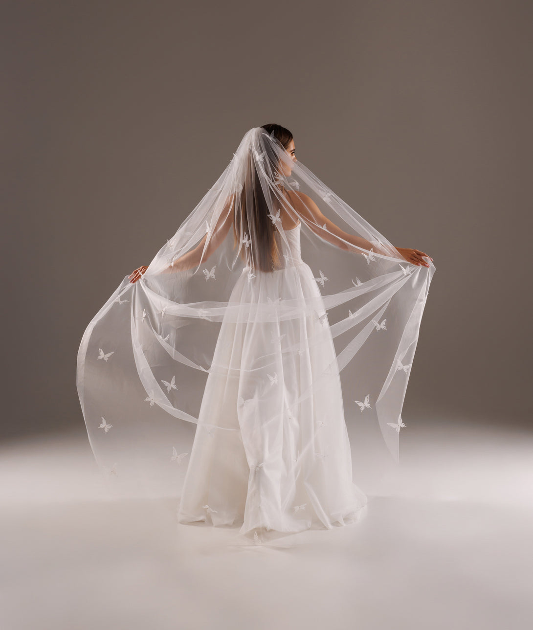 3D butterfly wedding veil. Any length you can exchange or return. We are glad to help you with any questions about your look, dress, size chart etc classic one layered veil...