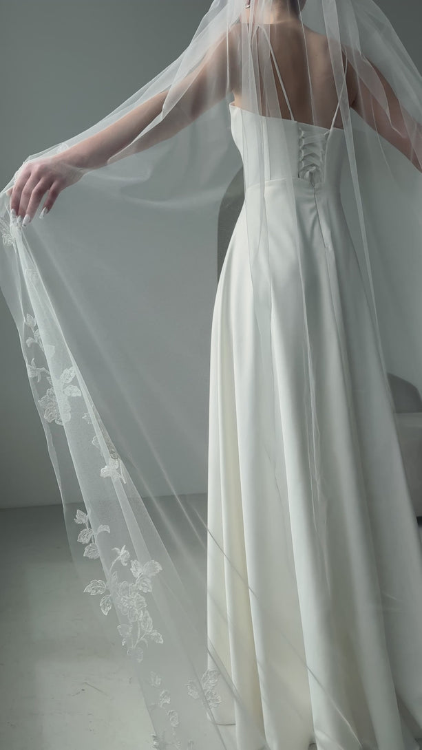 One layered classic lace trim bridal veil ✔︎Details: soft tulle one layered classic veil decorated with lace appliques attachment with a metal comb available in different lengths Width - 150-200 cm...