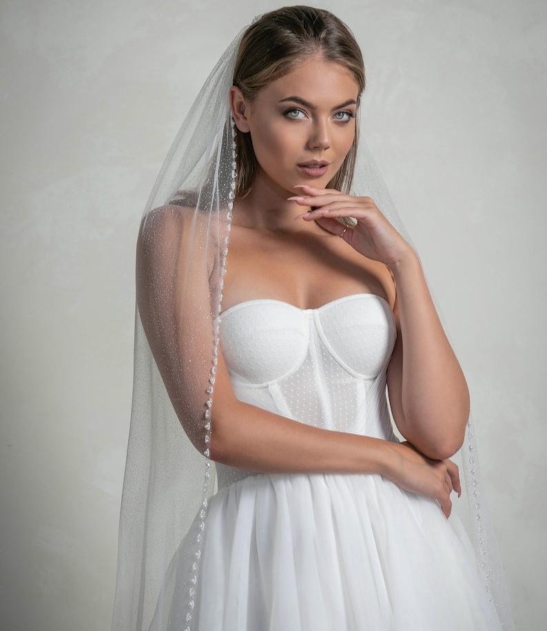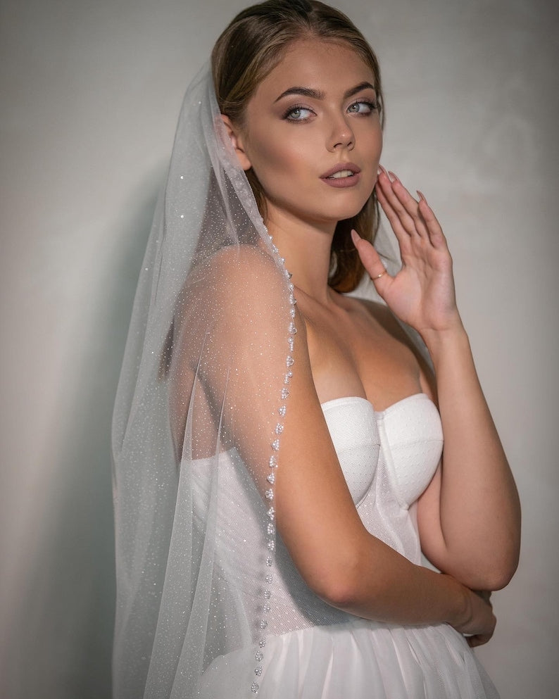 And then it will be easy to find the best wedding veil with crystals and glitter tulle