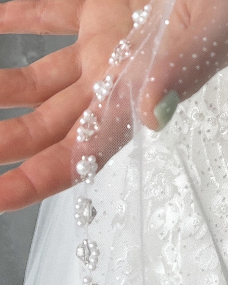 Glitter veil with beads and crystals for wedding. If you choose something special for your Big Day, you should clearly know what dress you like. I hope you know