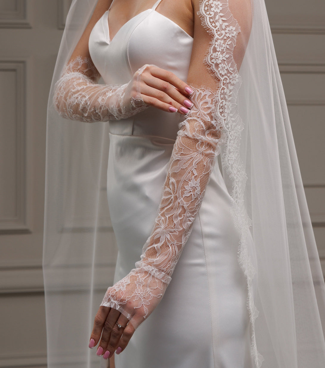 - Pearl Accents: Delicate pearls are thoughtfully placed on the gloves, creating a soft and captivating shimmer that enhances your bridal elegance.