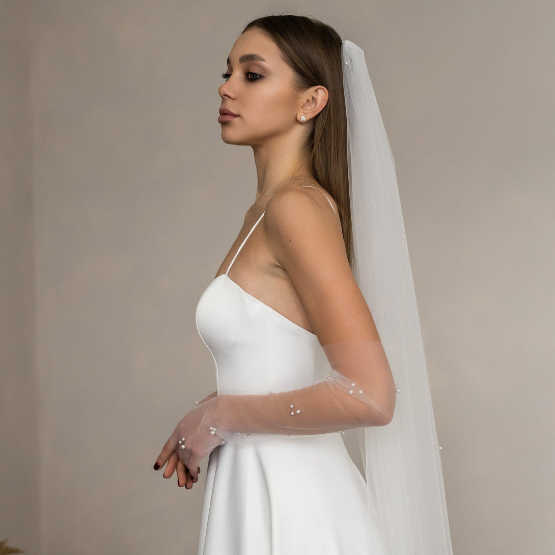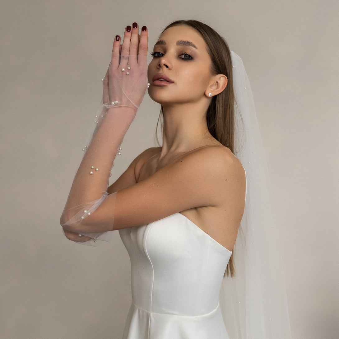 Fingerless gloves with pearls The length of the gloves is 45 cm (18 inches)One product contains two gloves. ✔︎Details: Hand made decorated with pearls available in different sizes Size on...
