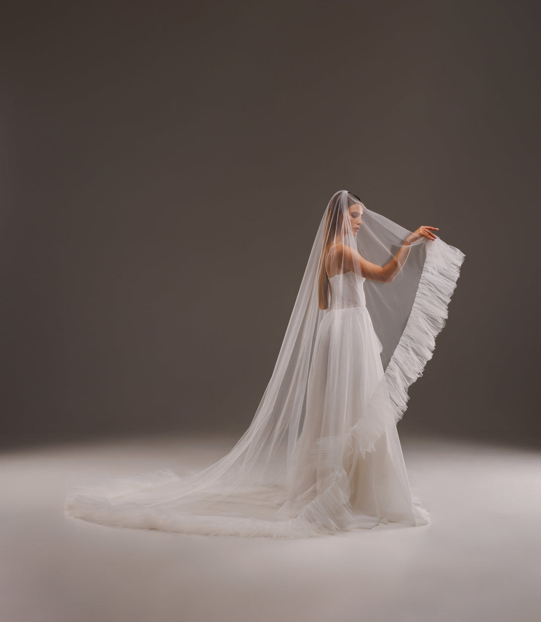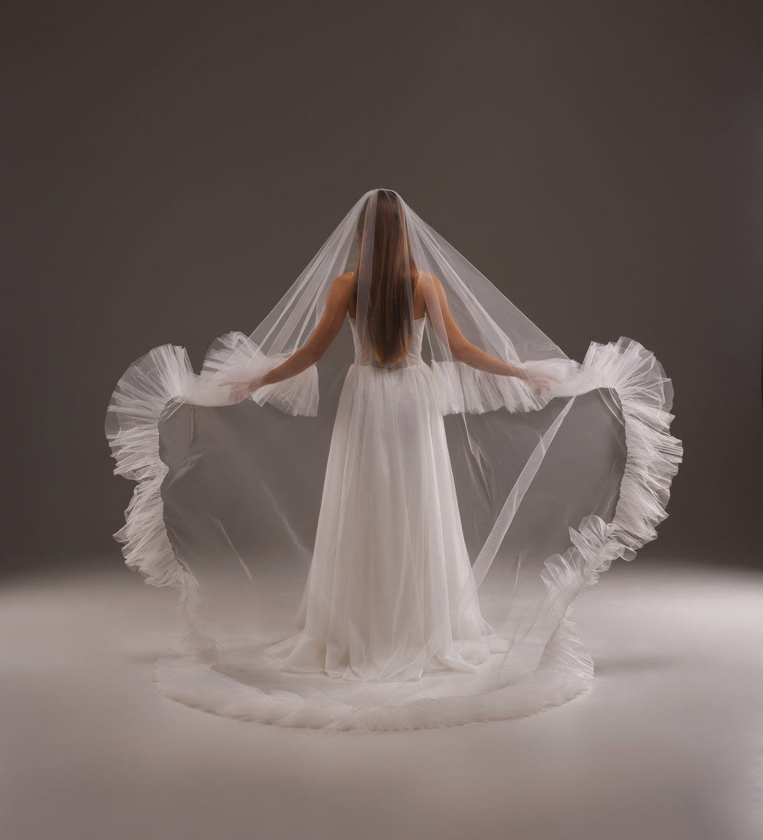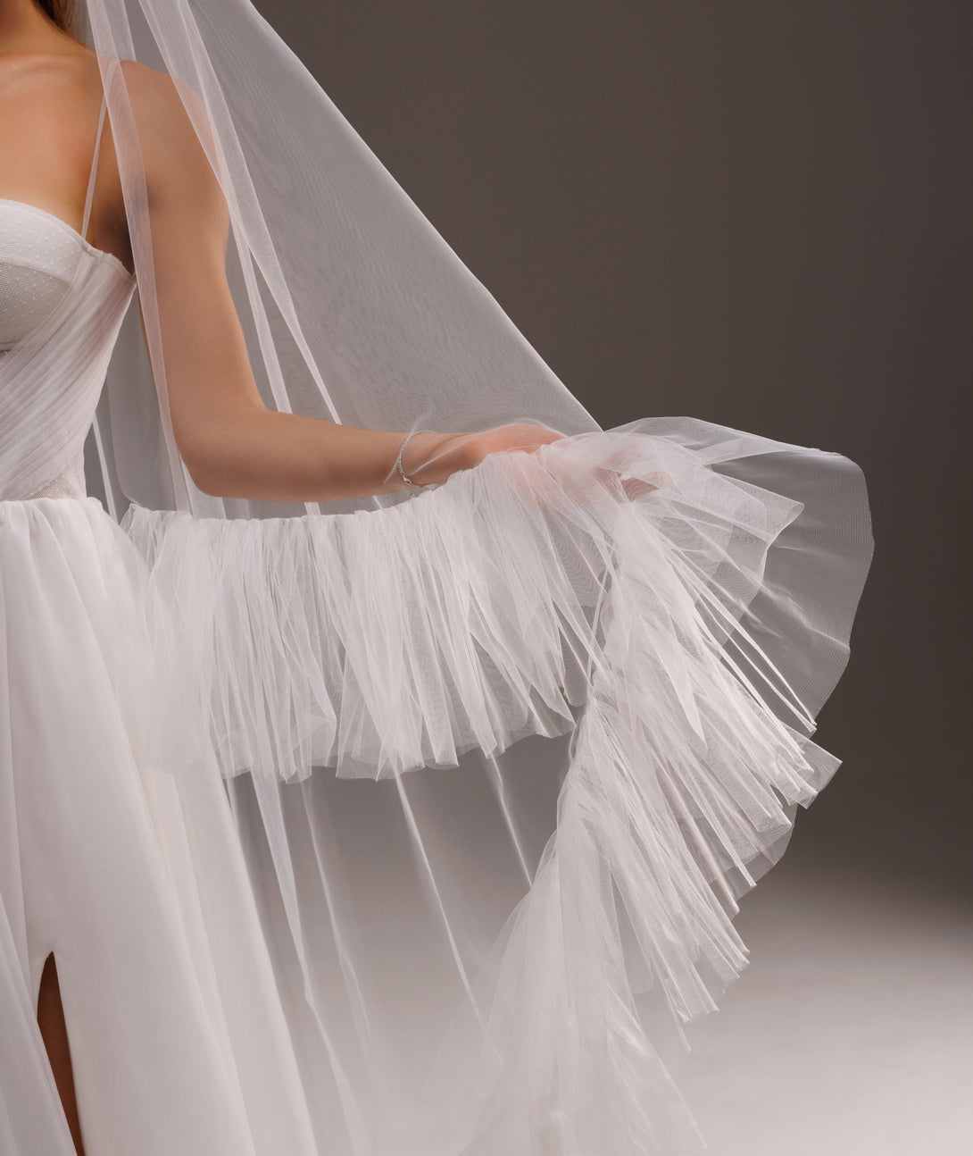 Cathedral ruffled one layer wedding veil, 1LFV/V-2545