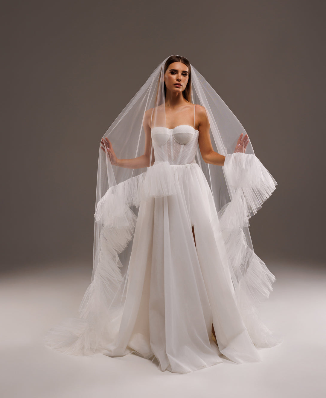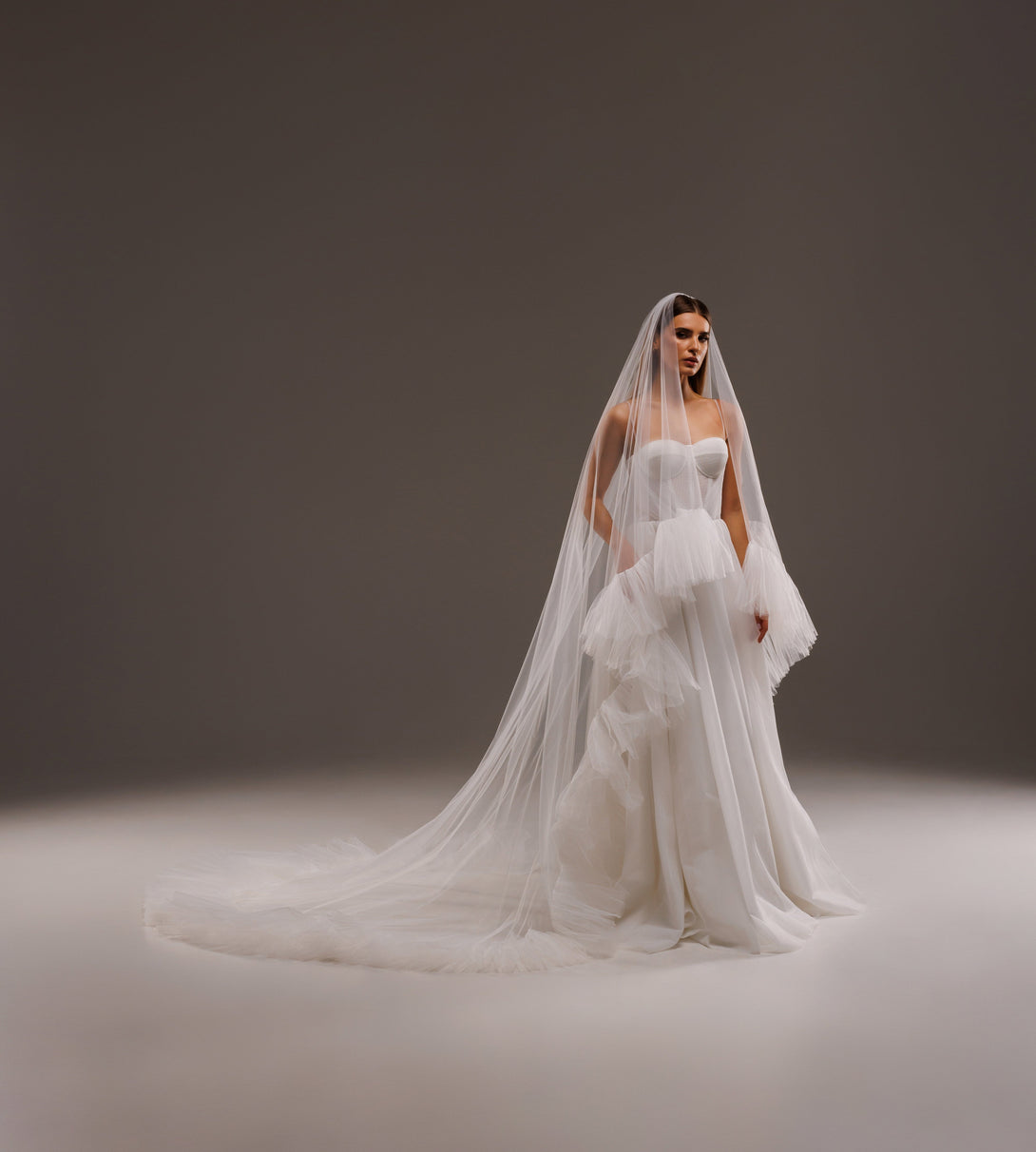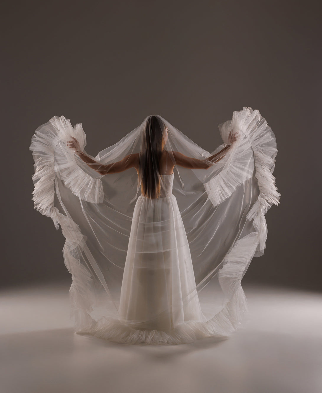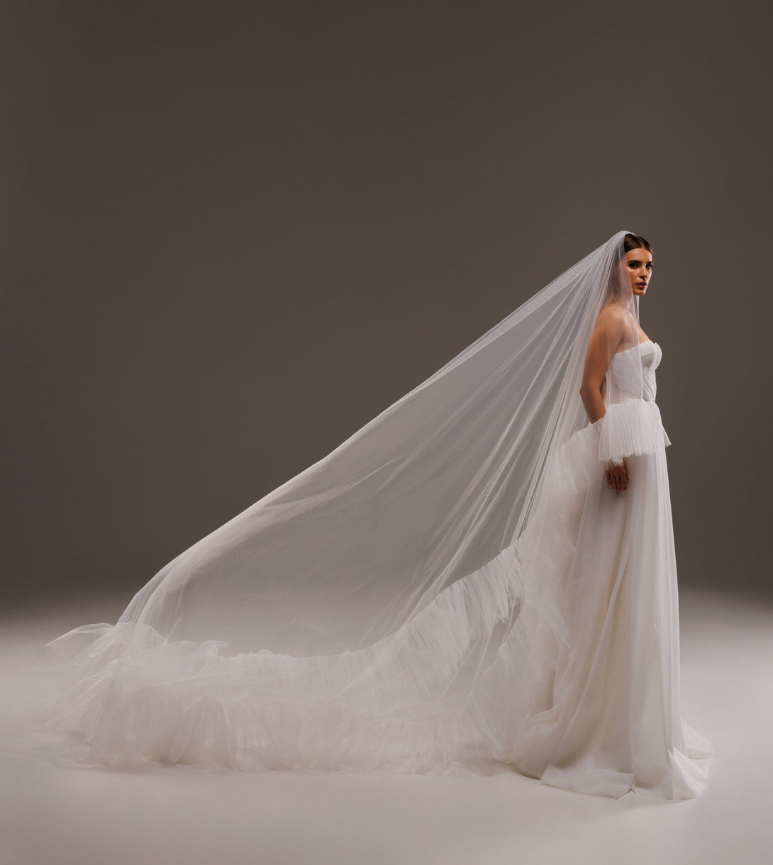 Cathedral ruffled one layer wedding veil, 1LFV/V-2545