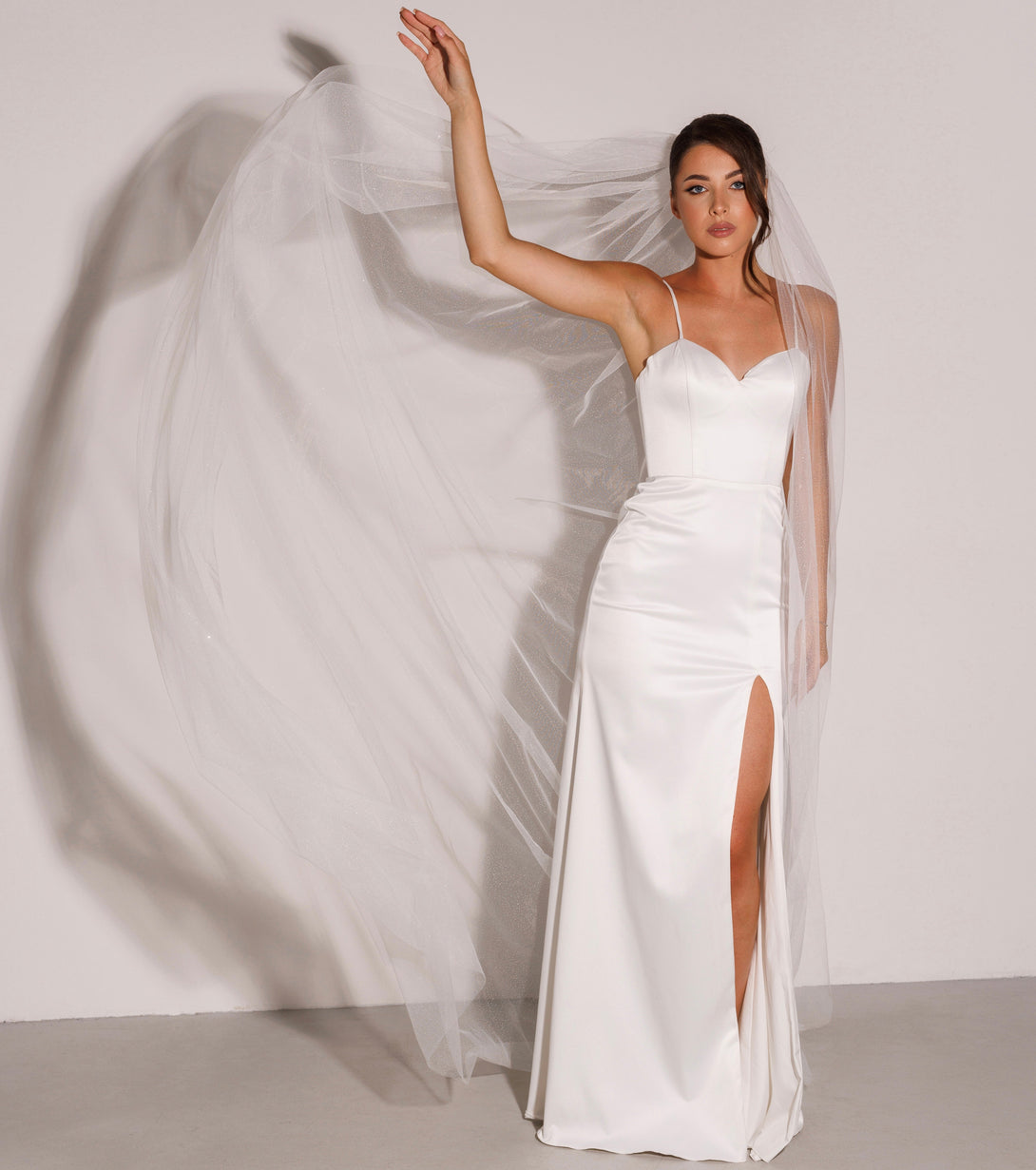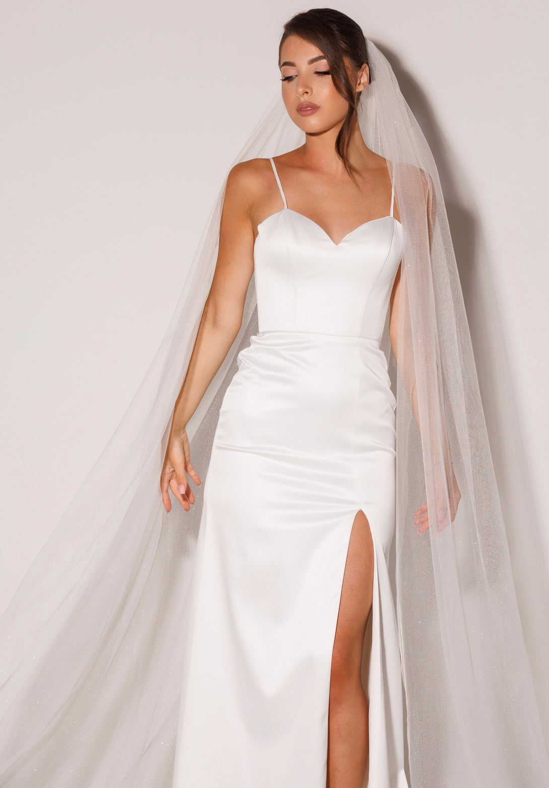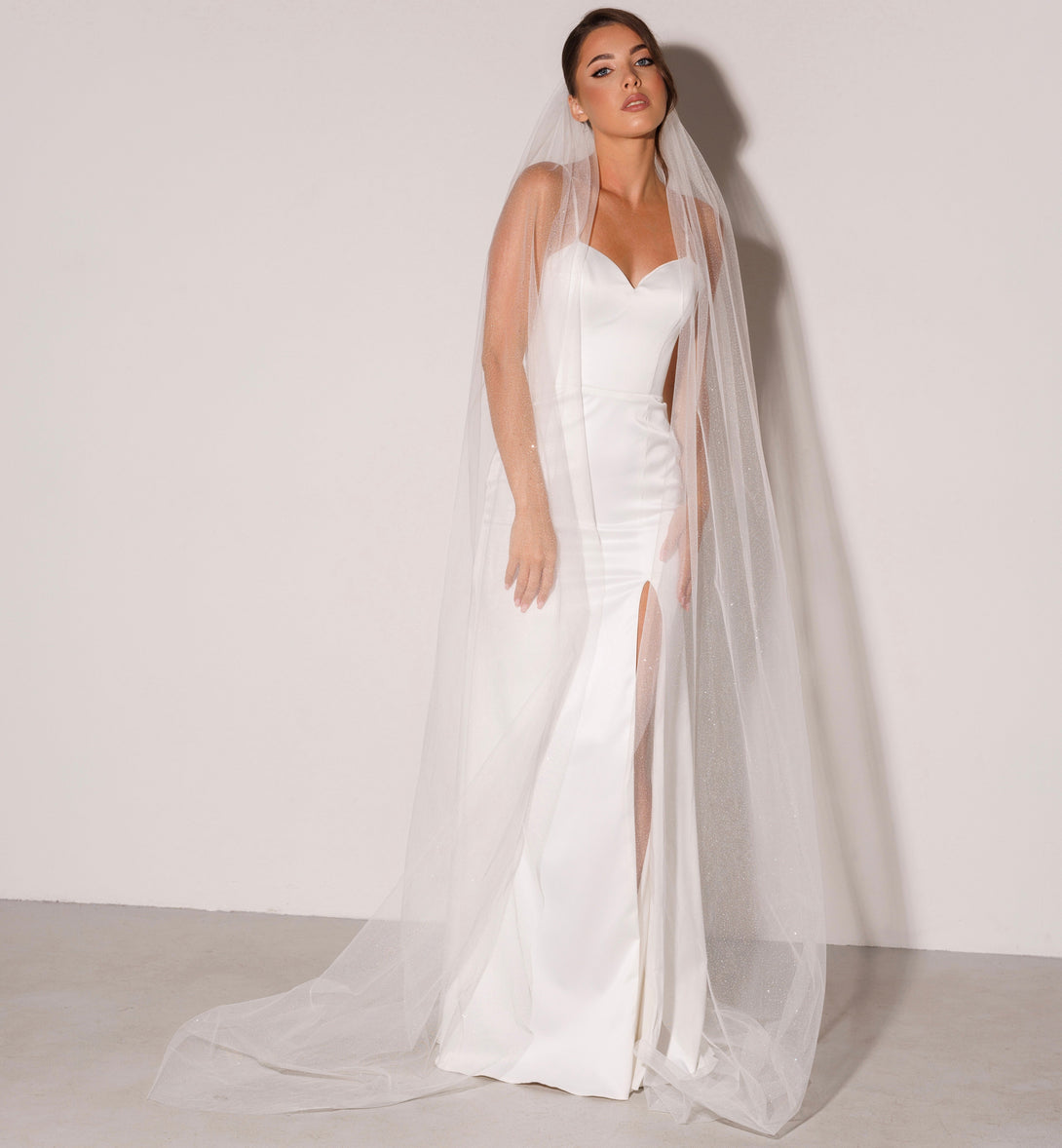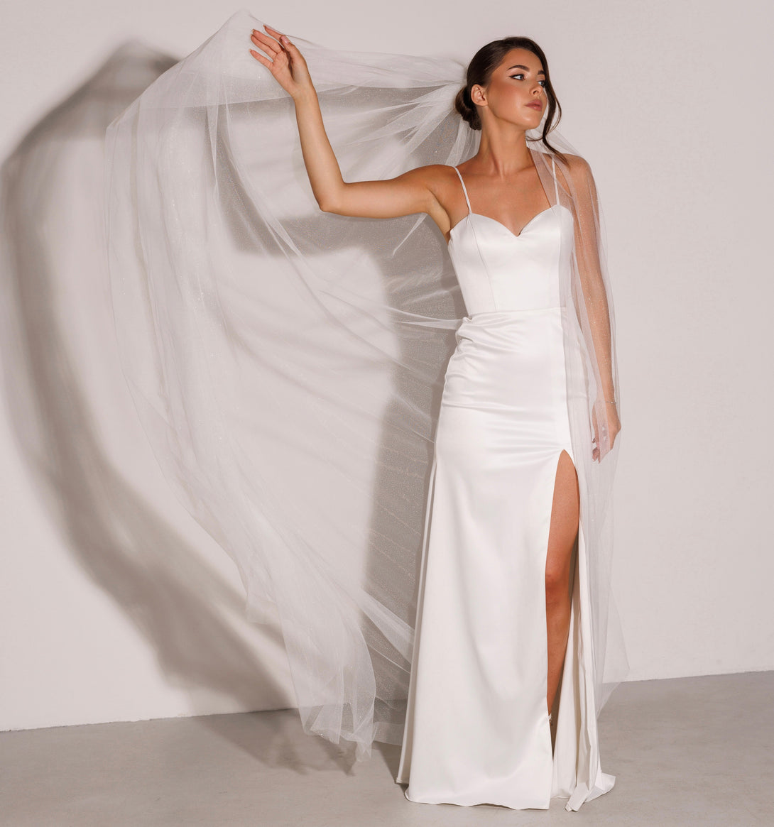 ✔︎Details: glitter tulle one layered classic veil attachment with a metal comb available in different lengths Width - 300 cm (120'') Size on the photo - 250 cm (99'')