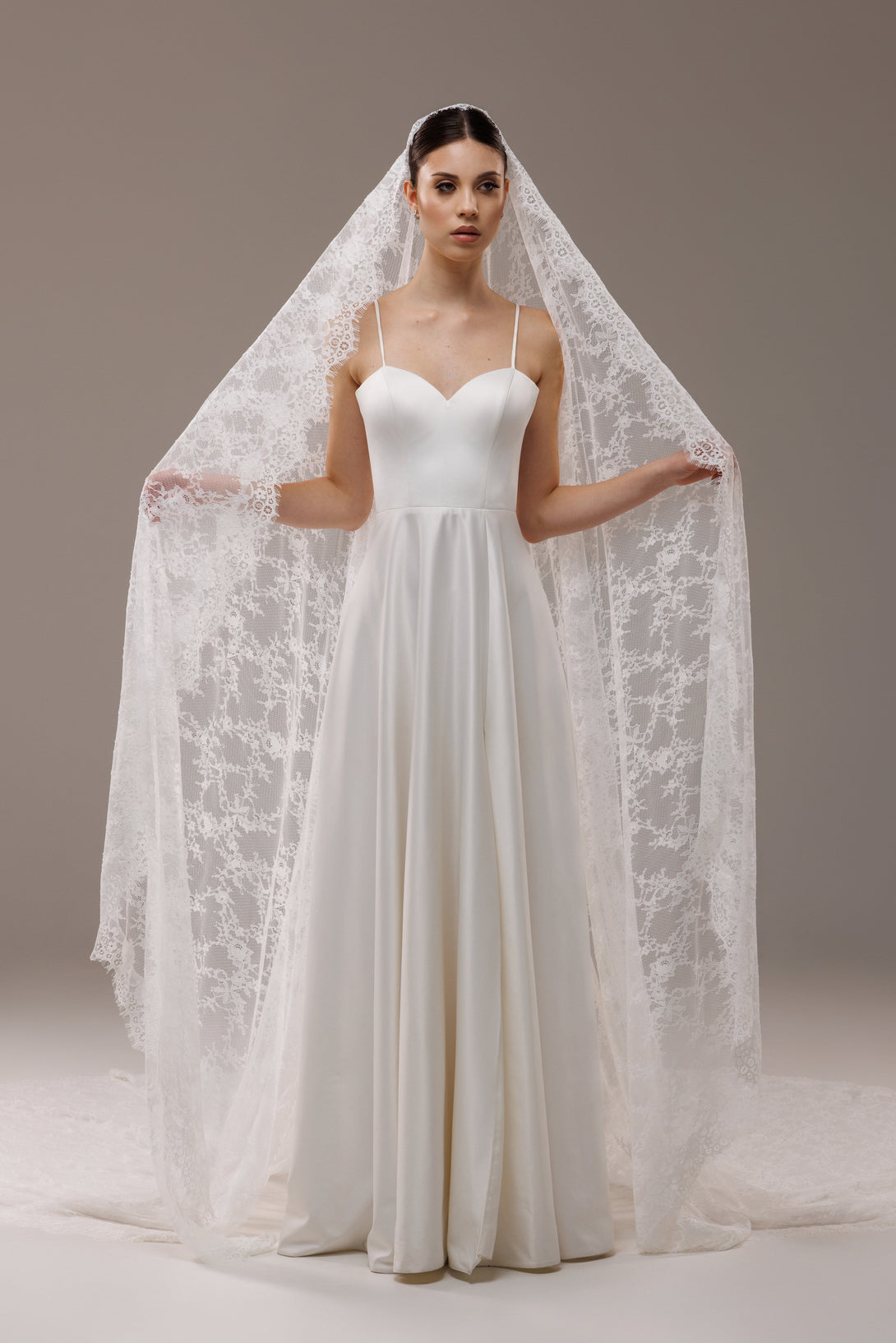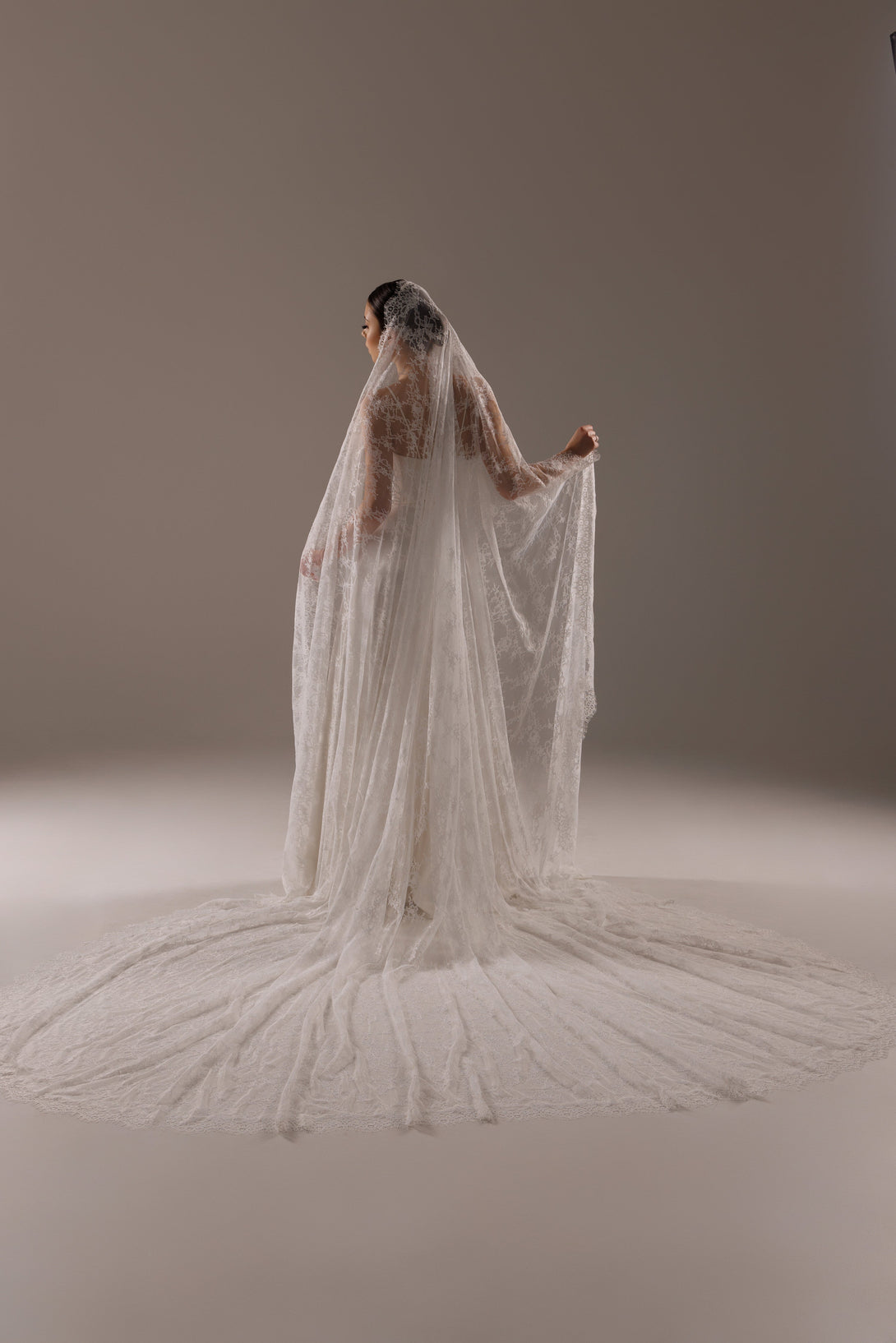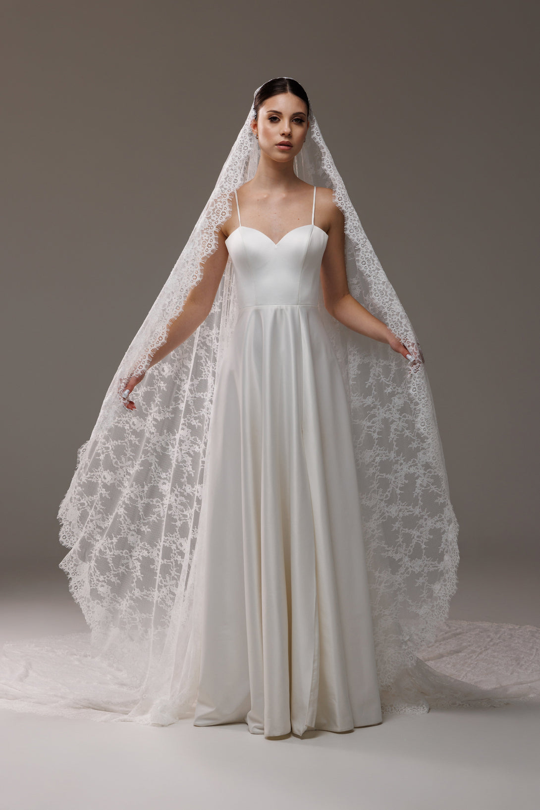 Wide mantilla Spanish veil made of solid chantilly lace, V-2507