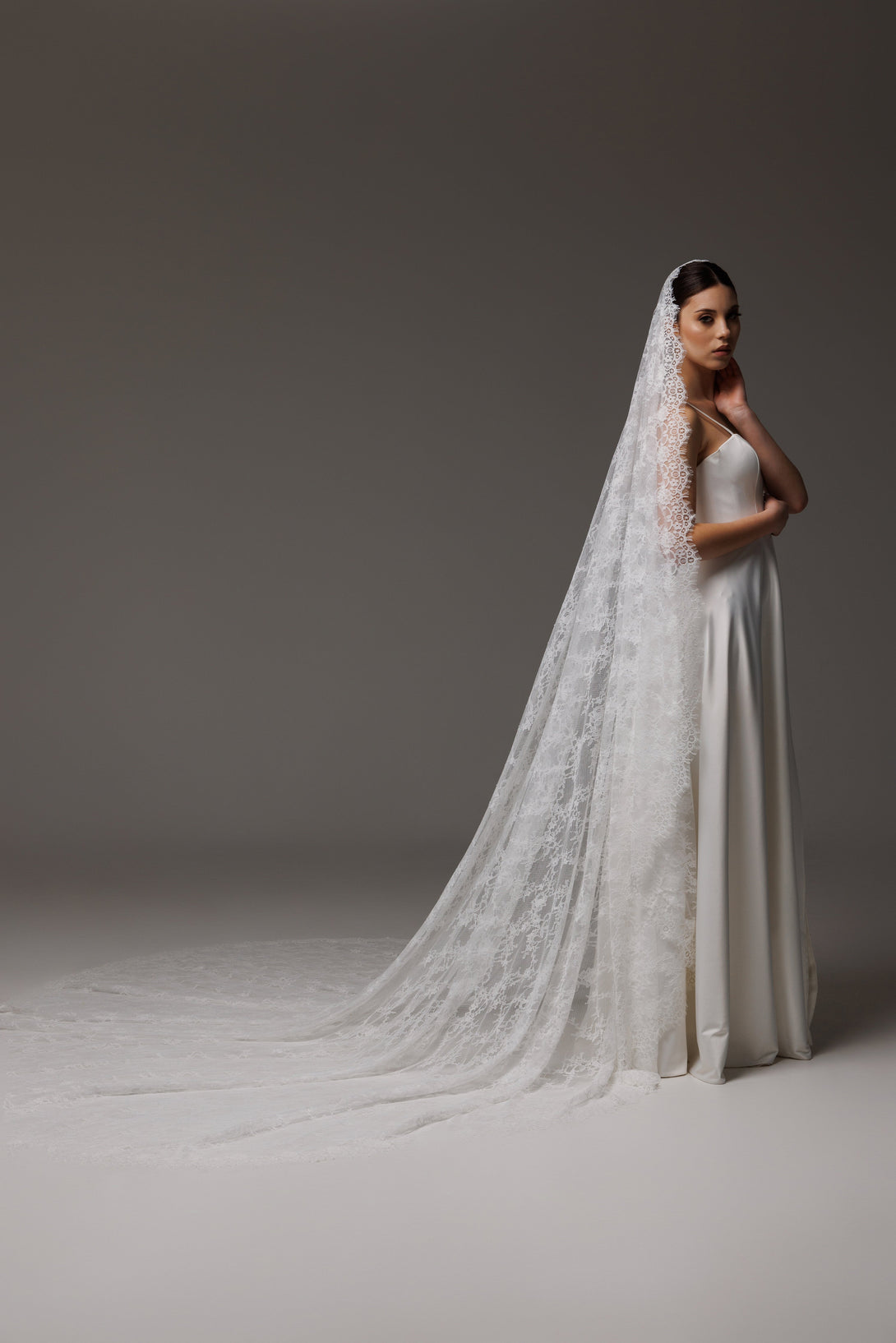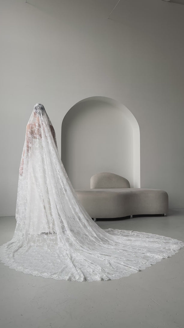 Mantilla lace trim veil ✔︎Details: soft chantilly lace one layered rounded mantilla veil decoration with lace trim available in different lengths Width - 300cm (120") Color - ivory is the basic...