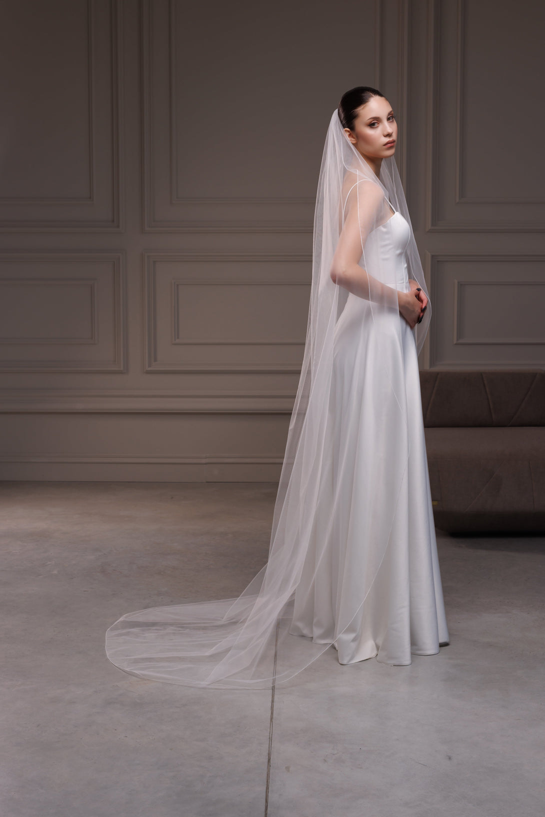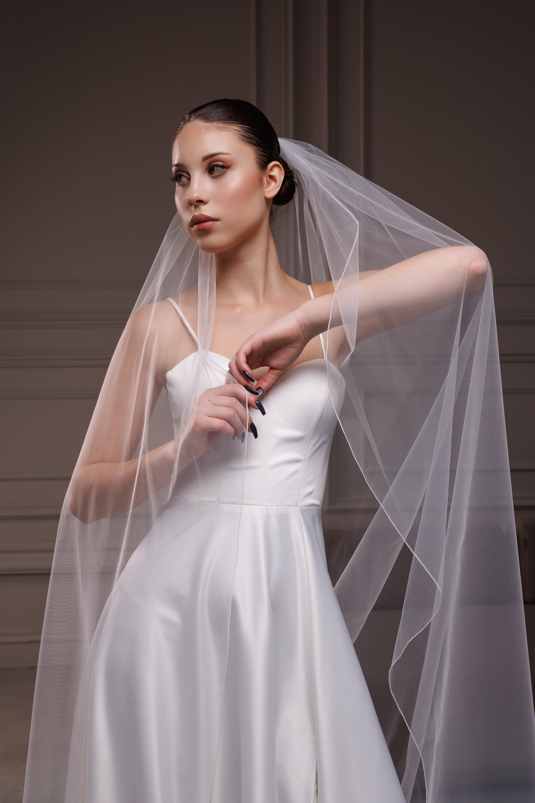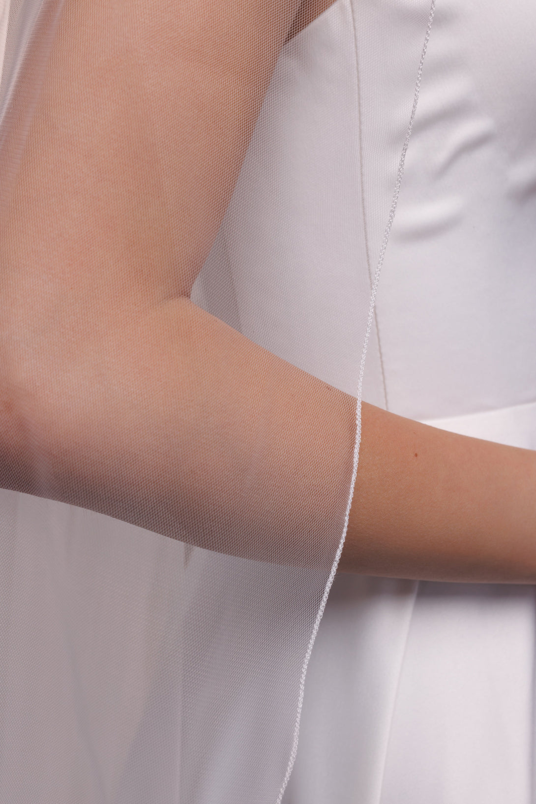 One layered classic pencil edge bridal veil ✔︎Details: soft tulle one layered classic veil with rolled edge attachment with a metal comb available in different lengths Width - 59" and 79"...