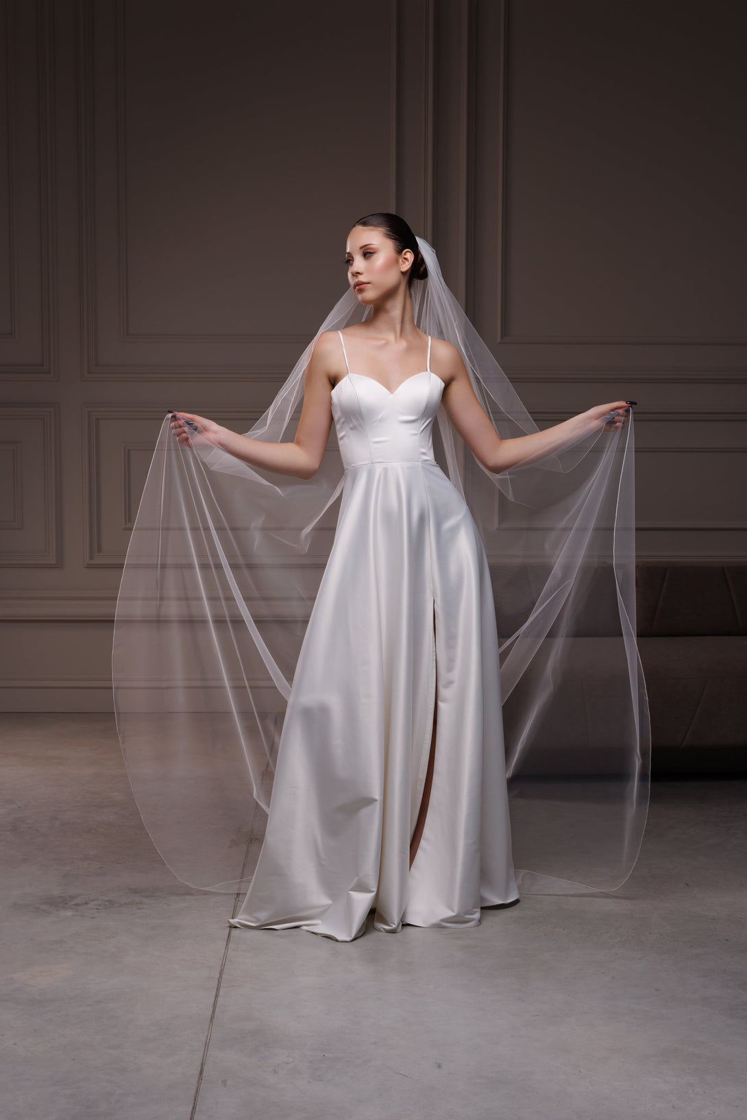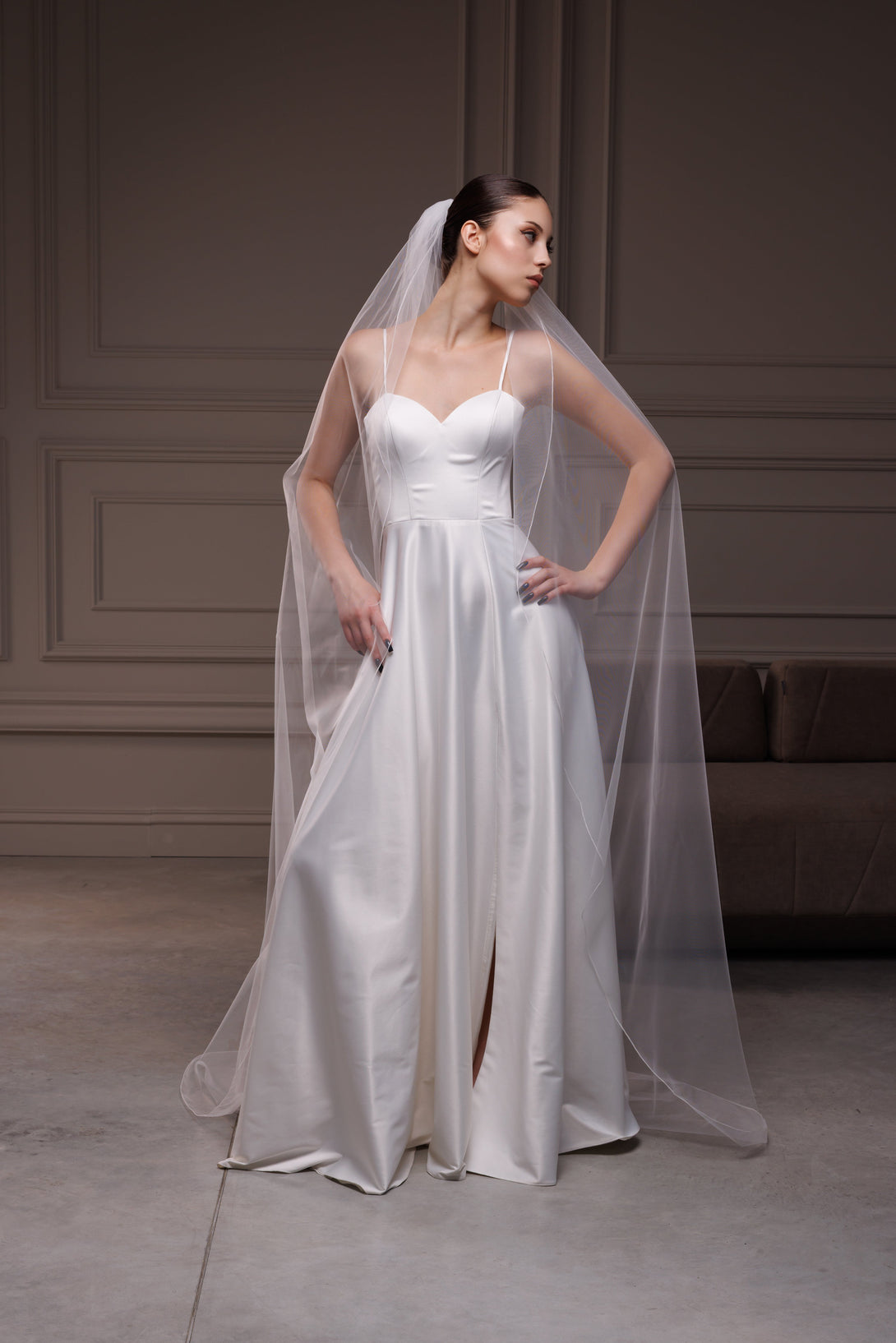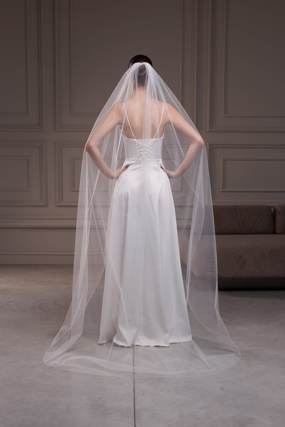 One layered classic pencil edge bridal veil ✔︎Details: soft tulle one layered classic veil with rolled edge attachment with a metal comb available in different lengths Width - 59" and 79"...