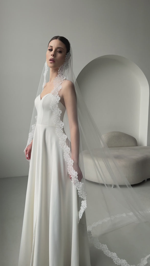 Lace trim mantilla wedding veil, V-2503