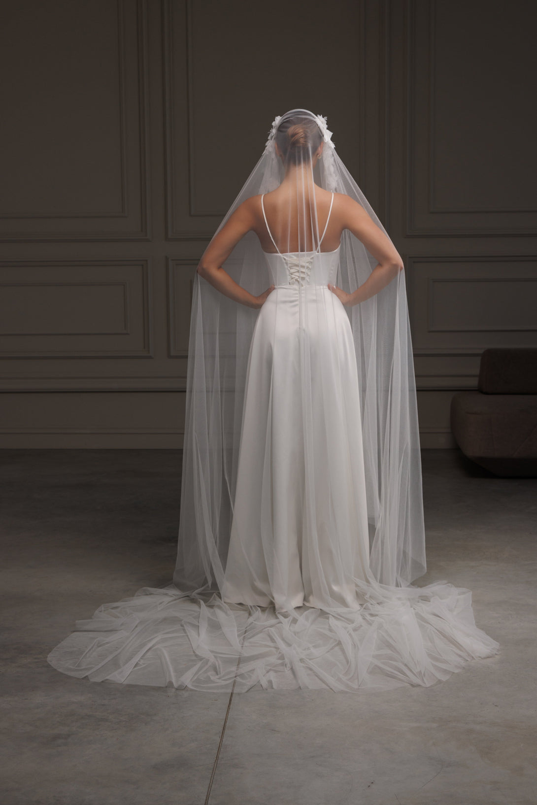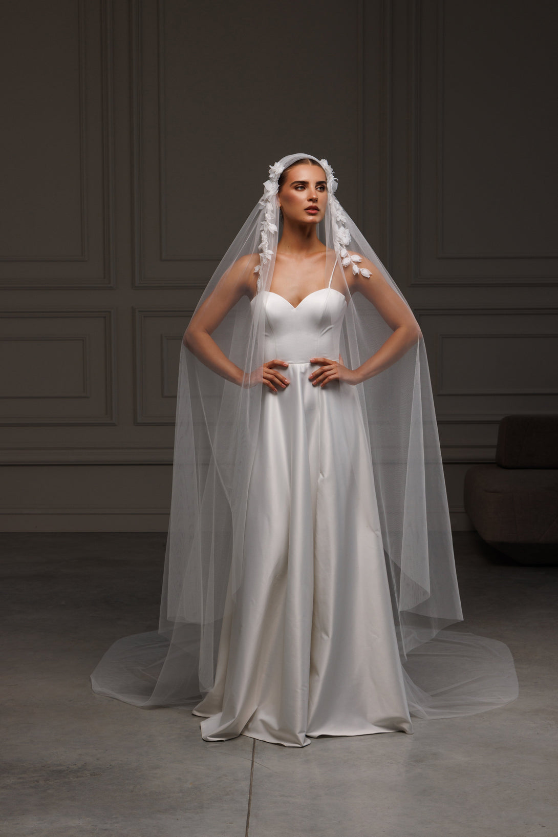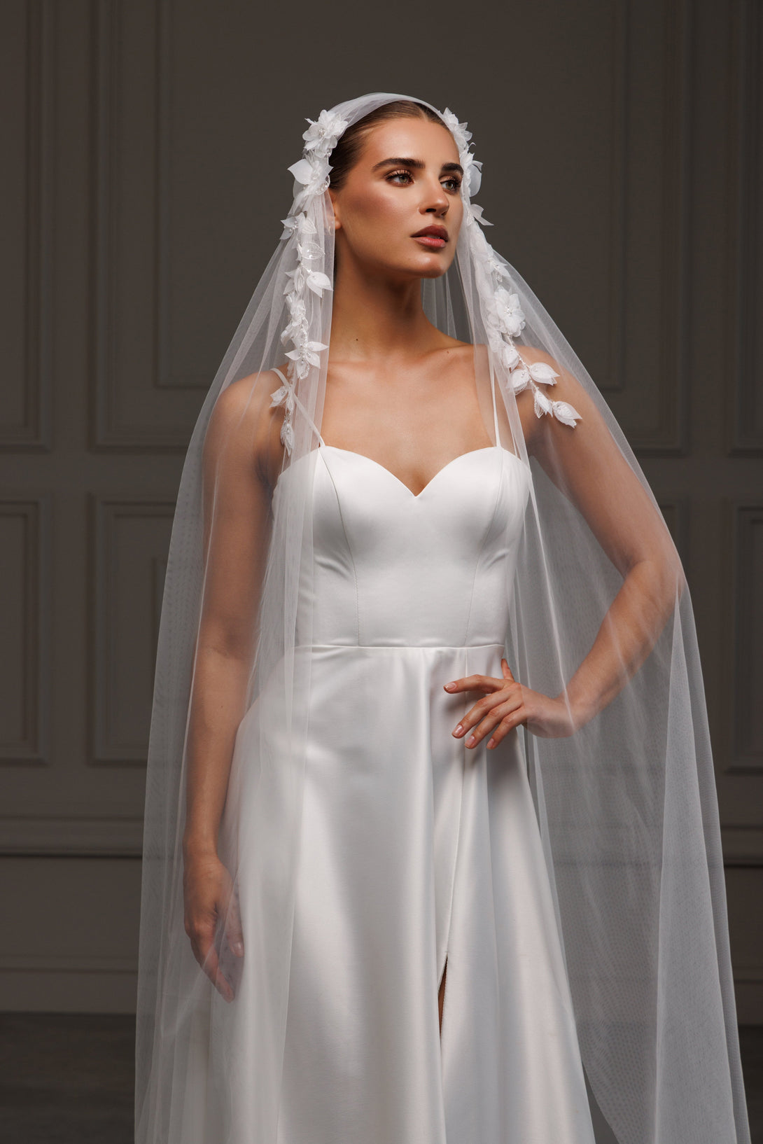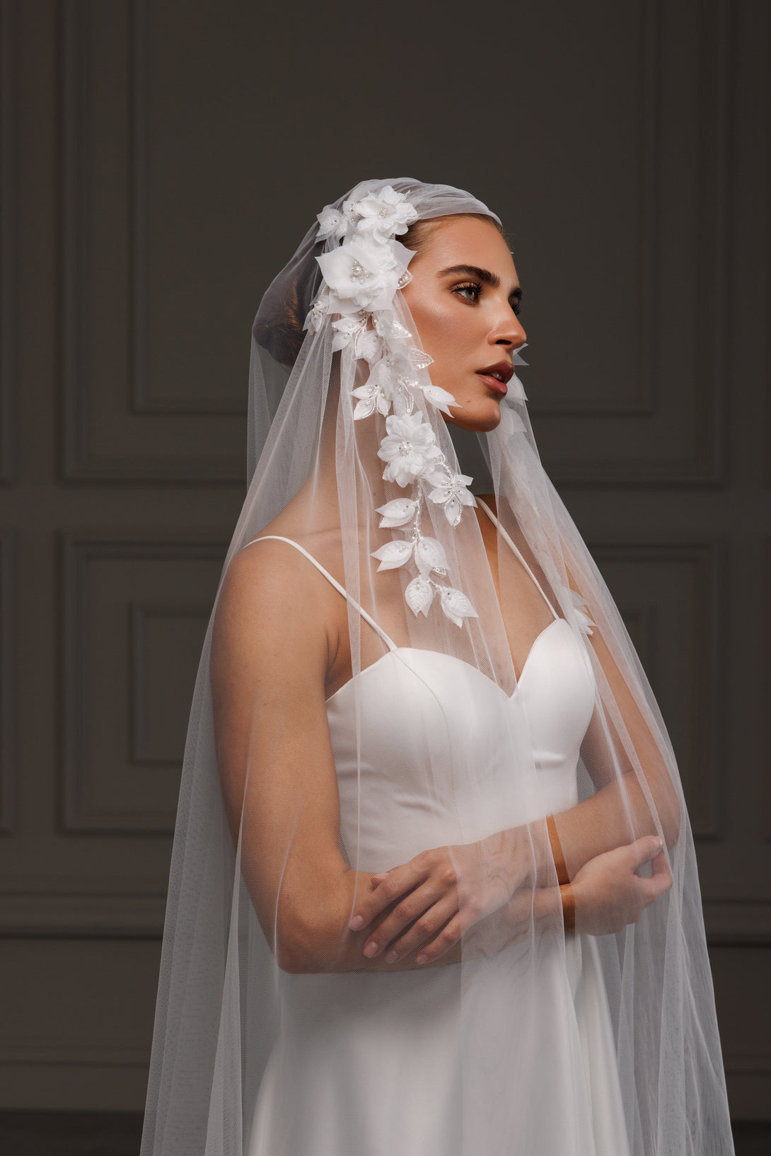 Juliet cape veil with 3D elements, V-2526