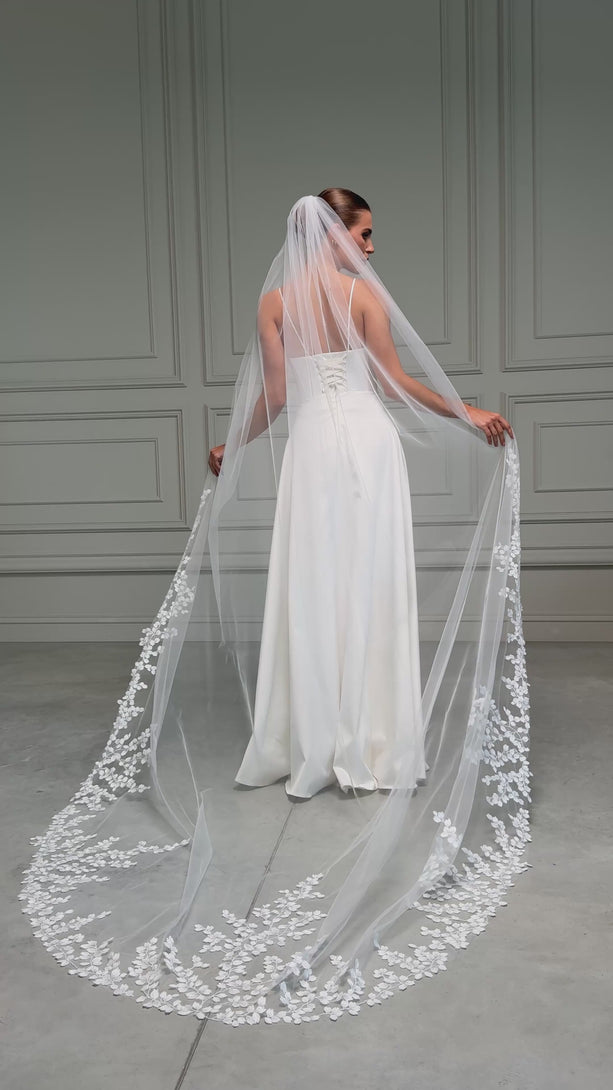 Lace One-Tier Bridal Veil ✔︎Details: soft tulle one layered classic veil decorated with lace appliques attachment with a metal comb available in different lengths Width - 79"inch Color - light ivory...