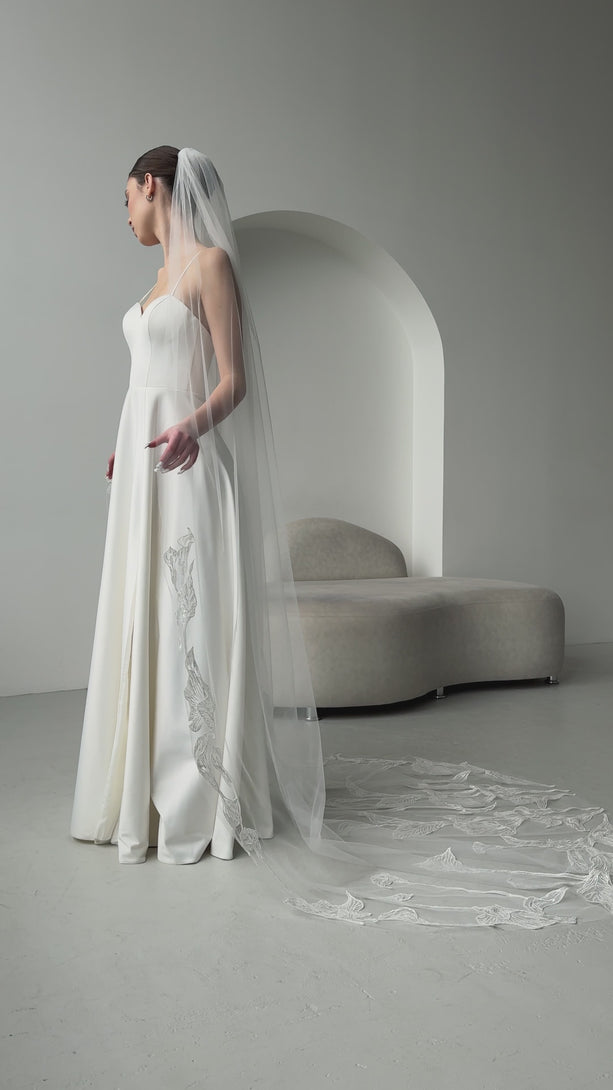 Lace appliques flowers cathedral veil, V-2506