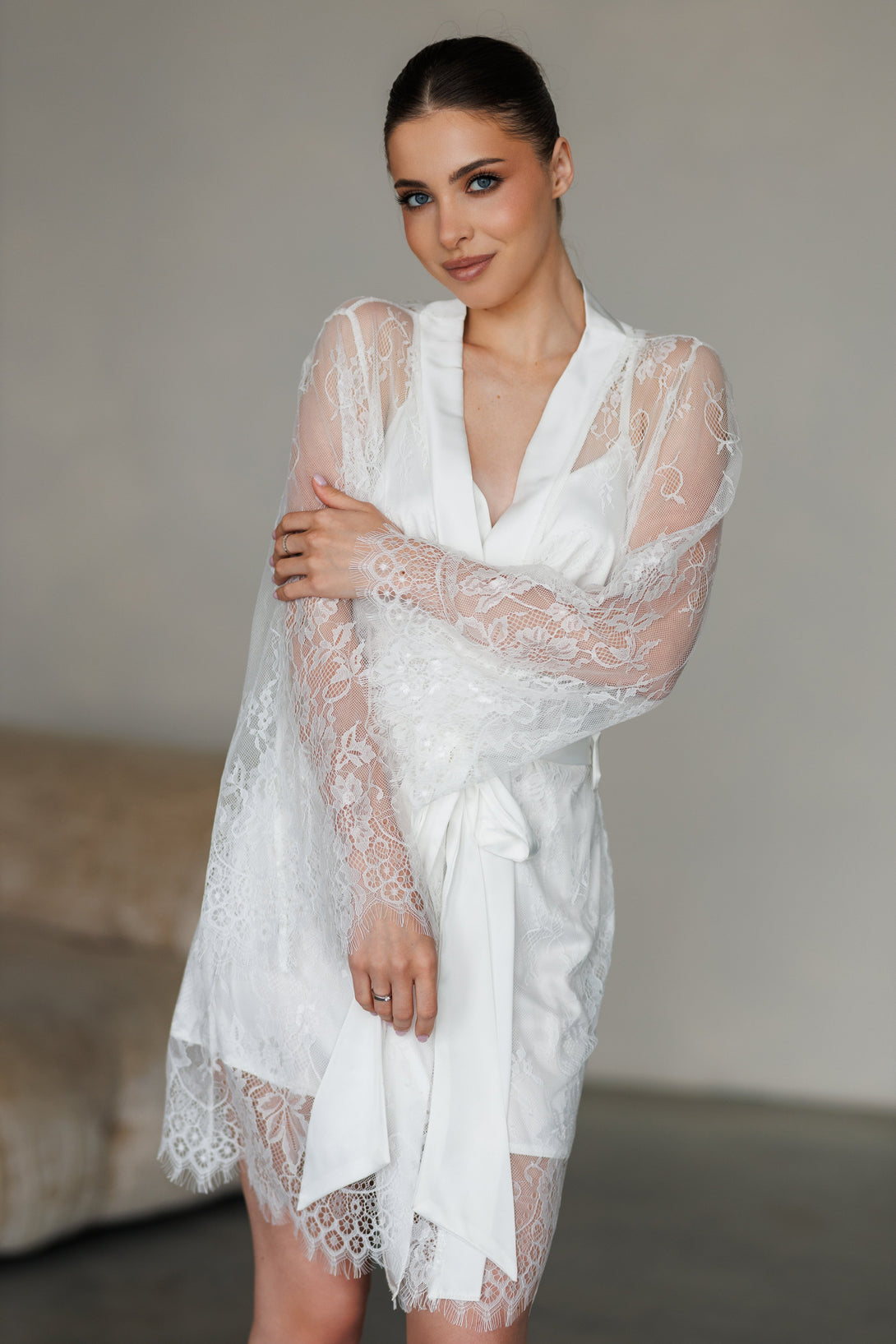Transparent Lace Bridal Robe – Elegant Wedding Morning Robe for Bride