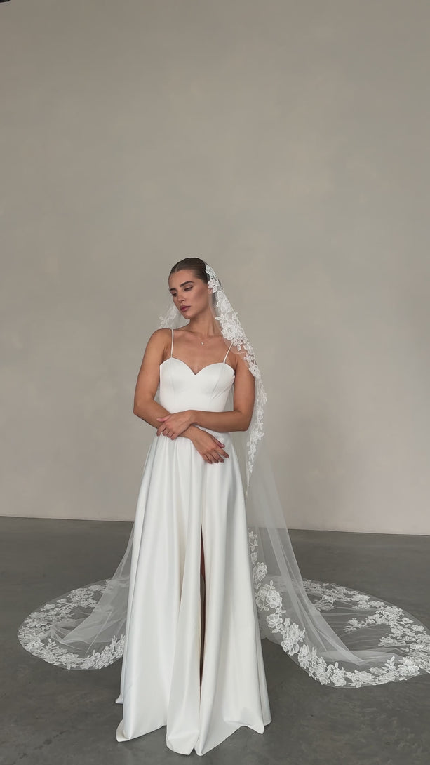 Mantilla Veil with Corded Lace Appliqués ✔︎Details: soft tulle one layered rounded mantilla veil decorated with corded lace appliqués available in different lengths Width - 200 cm (79") Color - ivory...