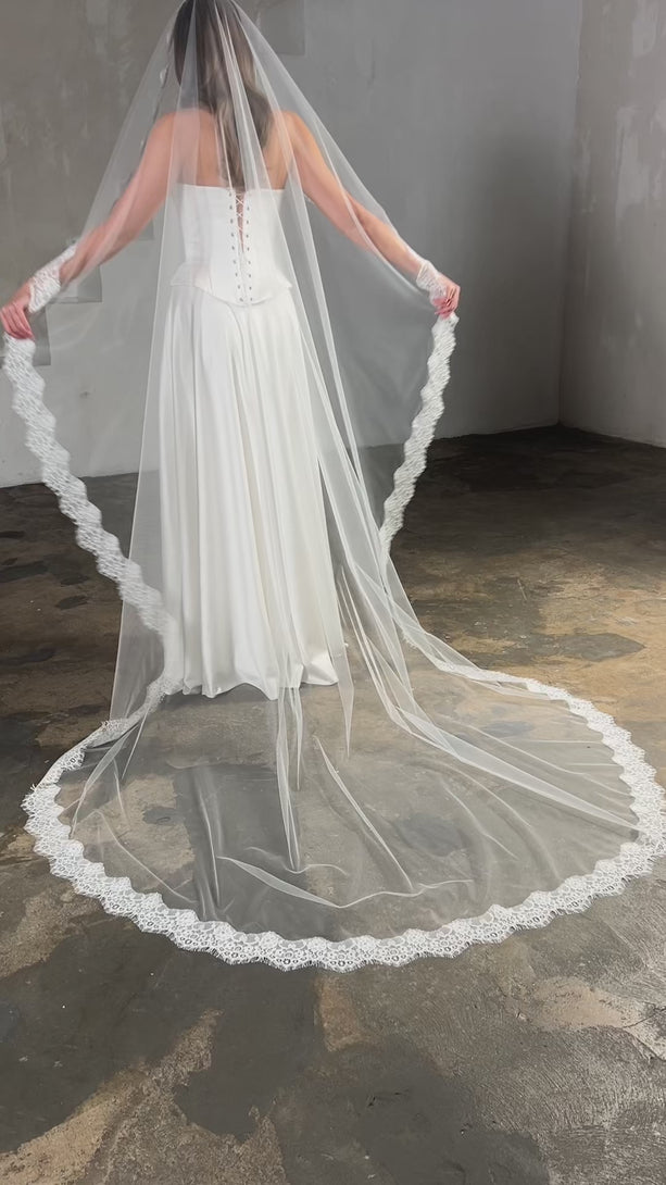 Mantilla lace trim veil