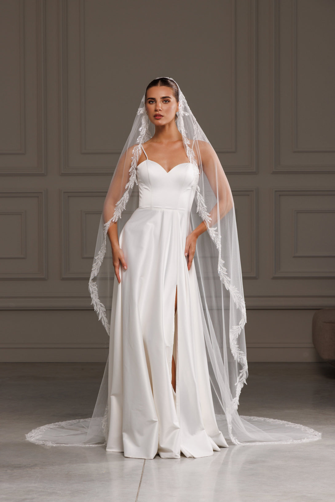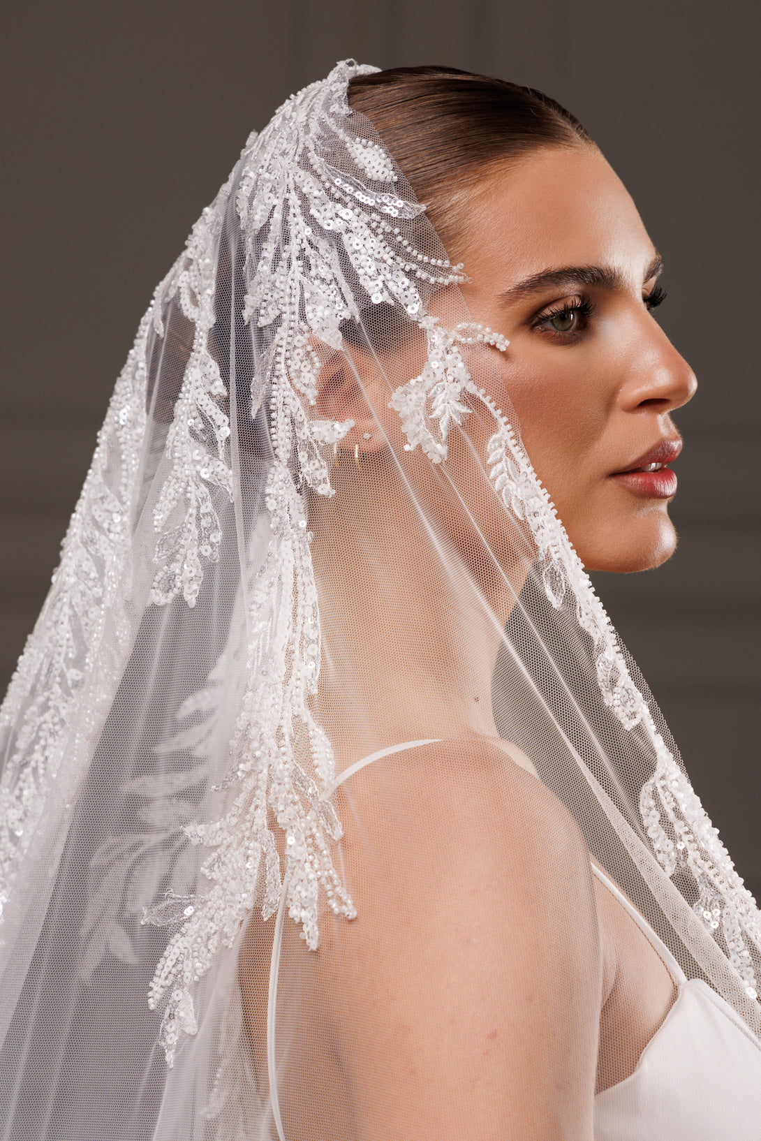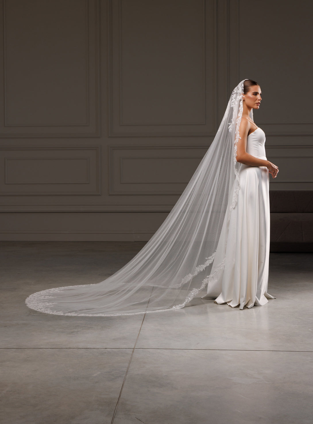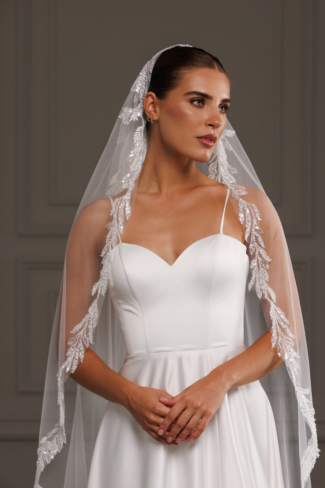 Mantilla Bridal Veil with beaded lace trim, V-2523