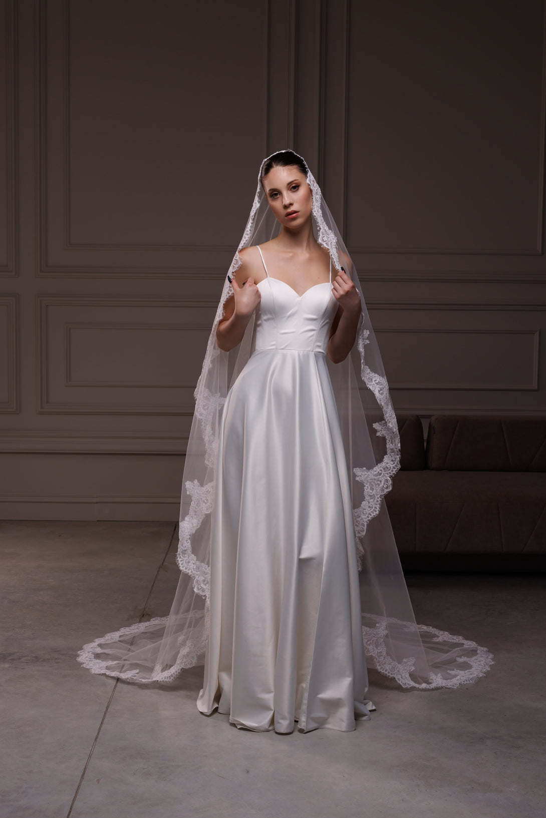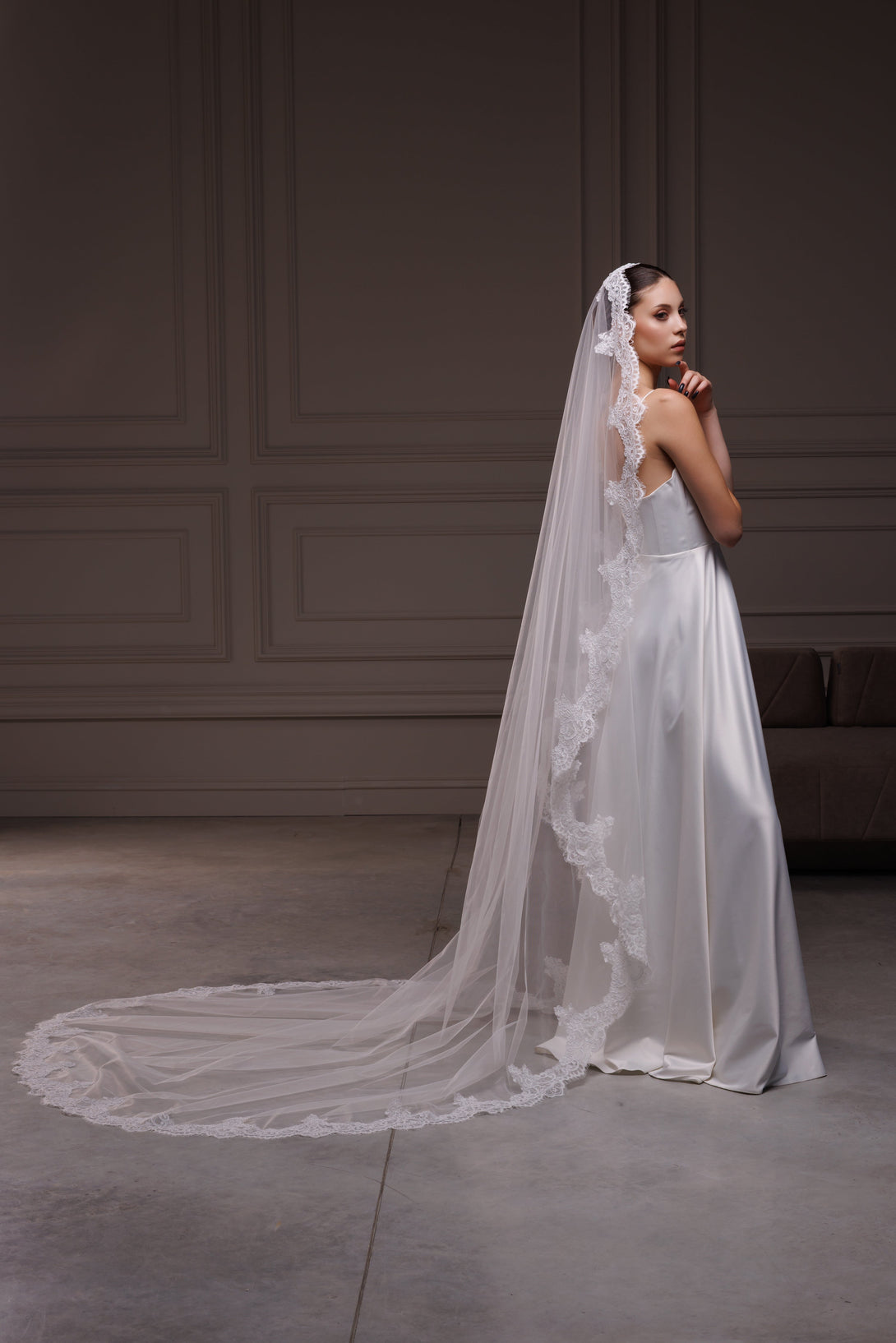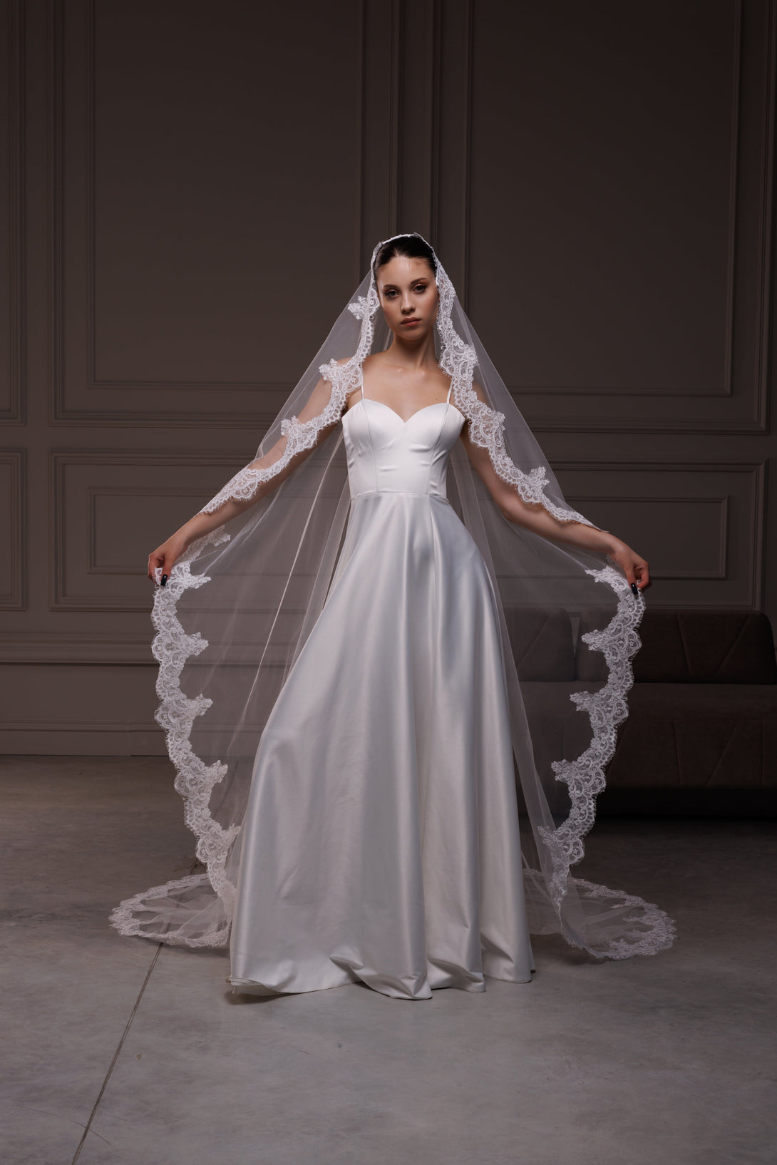 Elegant spanish mantilla lace trim veil