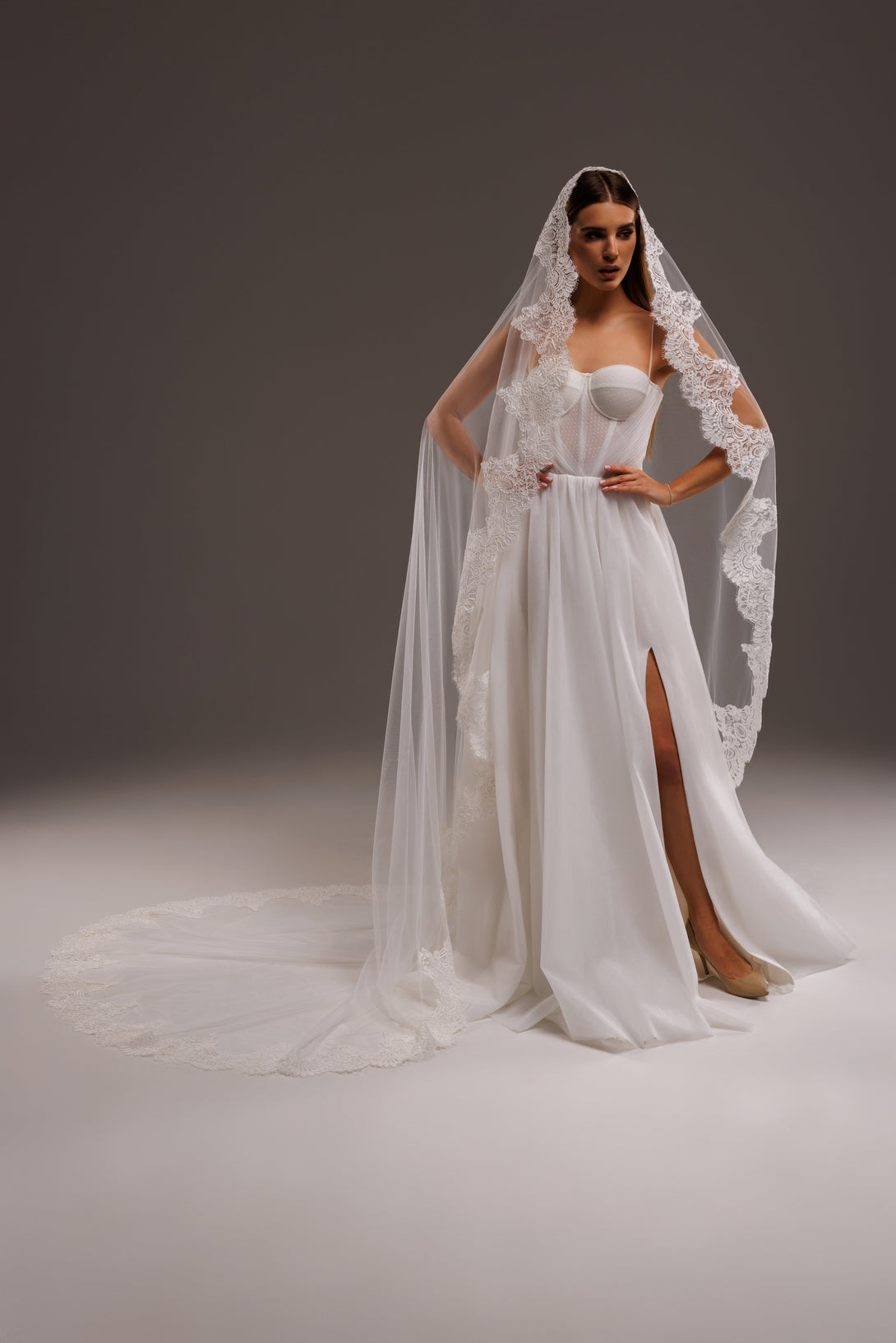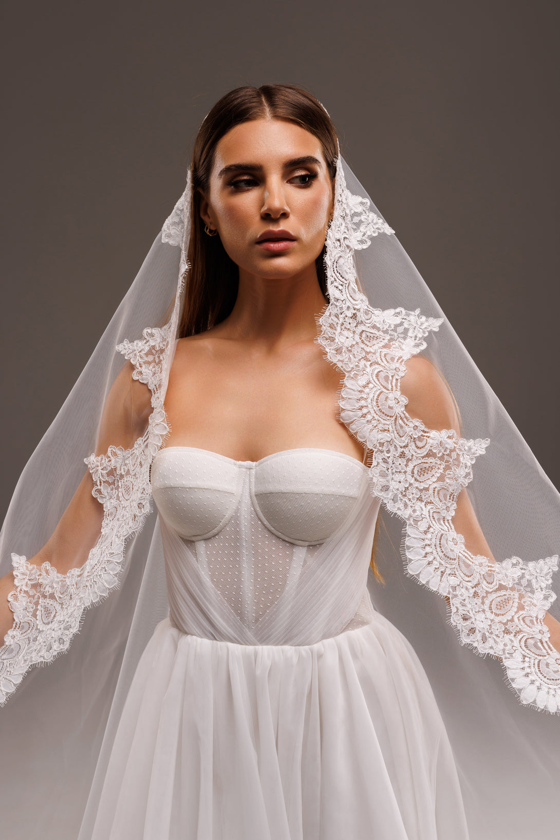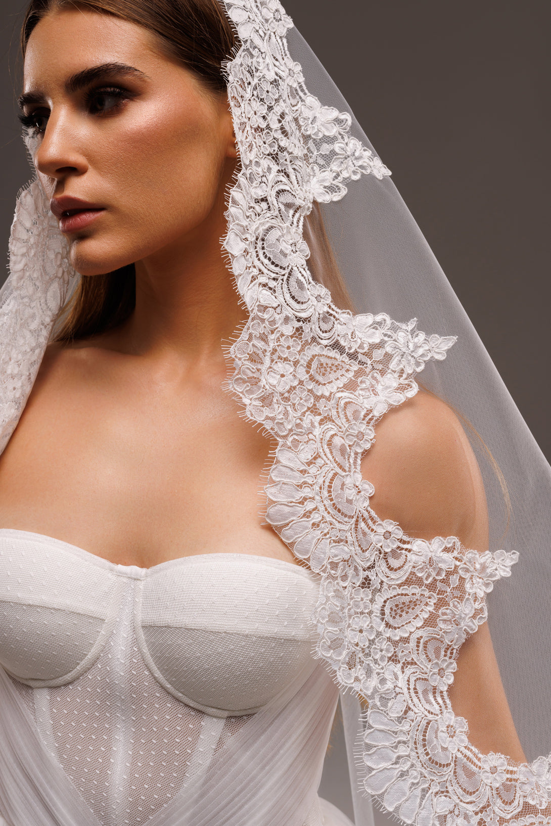 Elegant spanish mantilla lace trim veil ✔︎Details: soft tulle one layered rounded mantilla veil decorated with lace trim attachment with a metal comb available in different lengths Width - 79" Color...