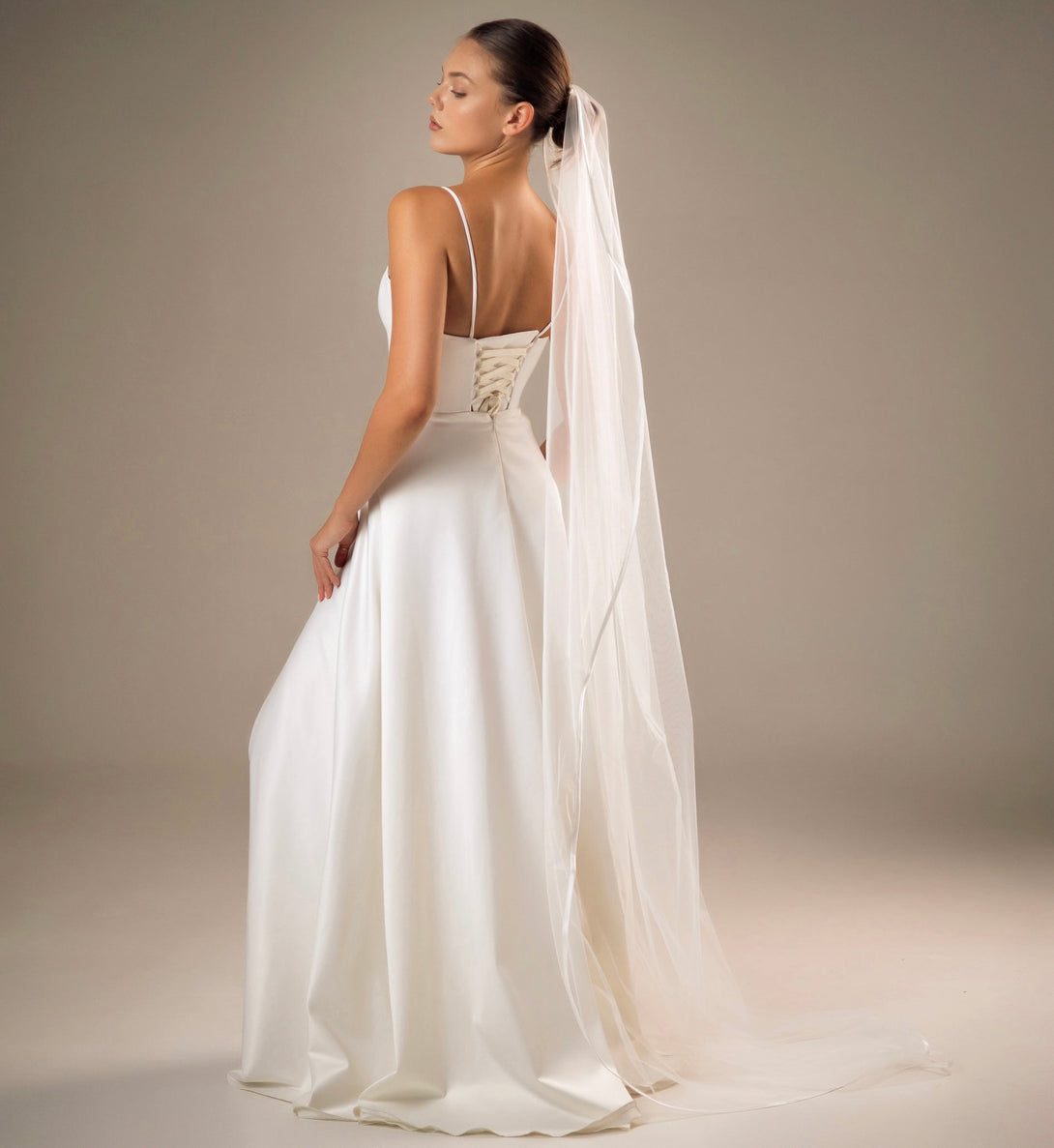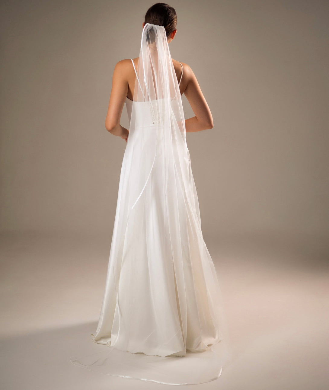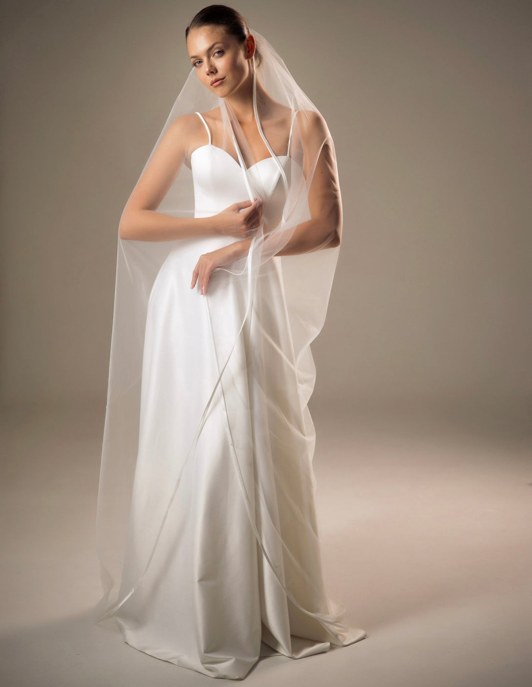 Soft Satin Ribbon Edge Wedding Veil, V-2547
