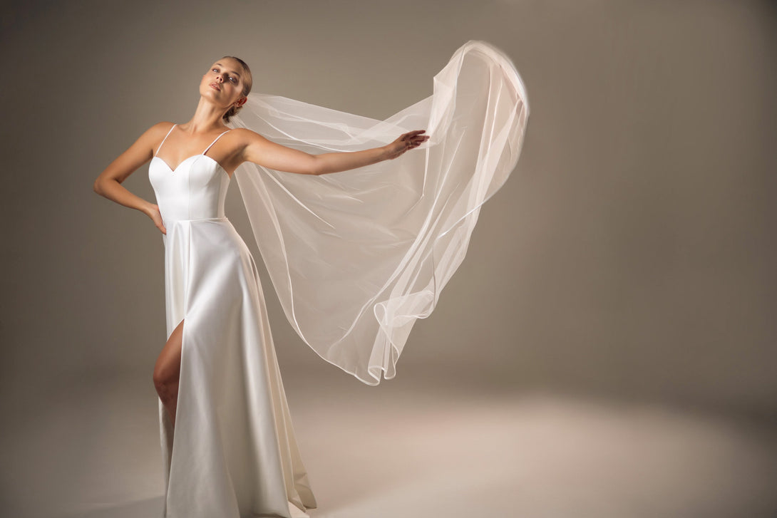Width - 150 cm and 200 cm (59" and 79" )veils with a length until 200 cm (79") have a width -150 cm (59" )and veils with a length more than230 cm (90") have a width - 200 cm (79")