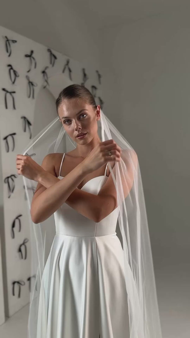 This veil with a narrow satin ribbon along the edge ✔︎Details: soft tulle one layered classic veil handmade decoration with satin ribbon attachment with a metal comb available in different lengths...