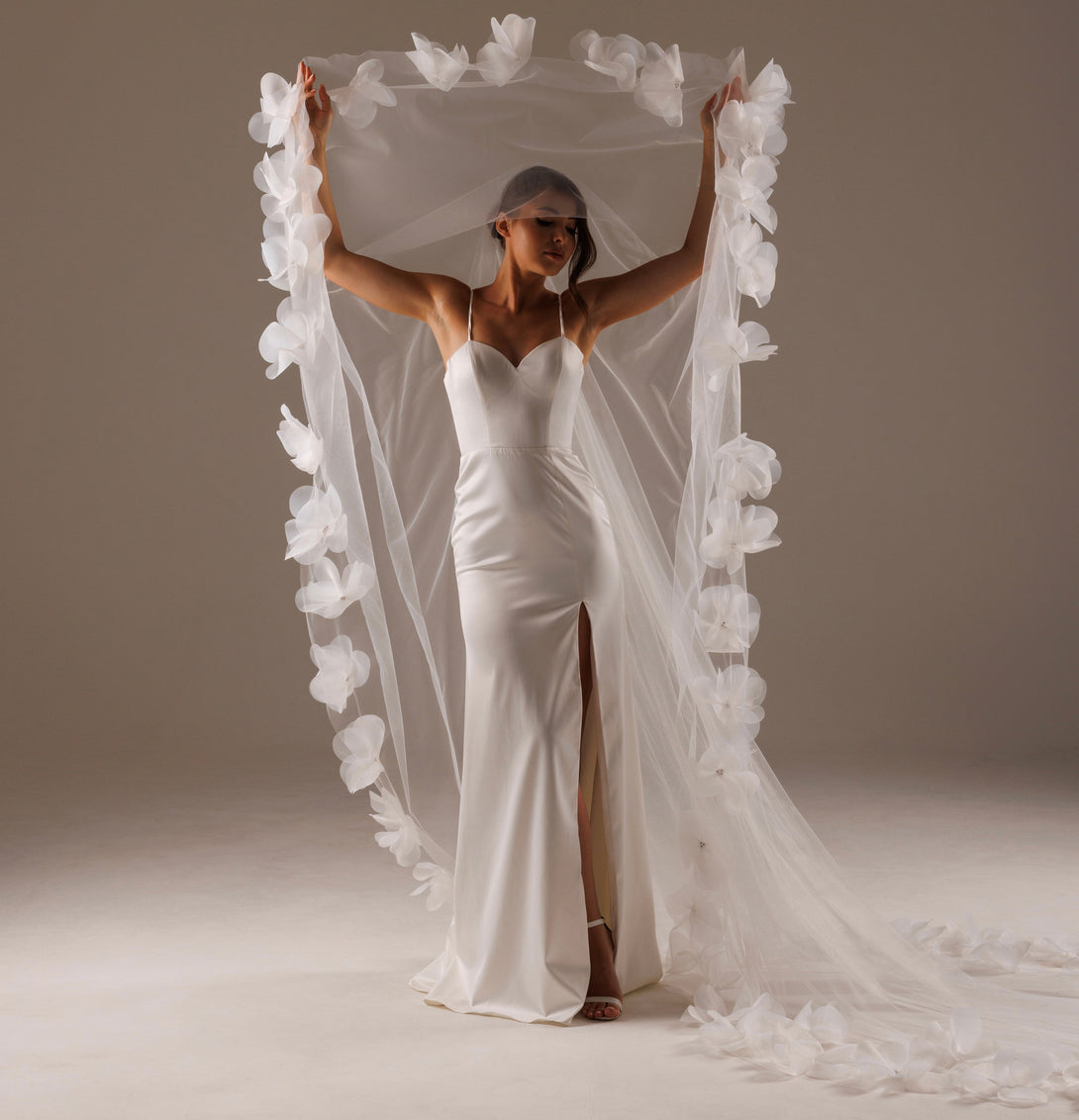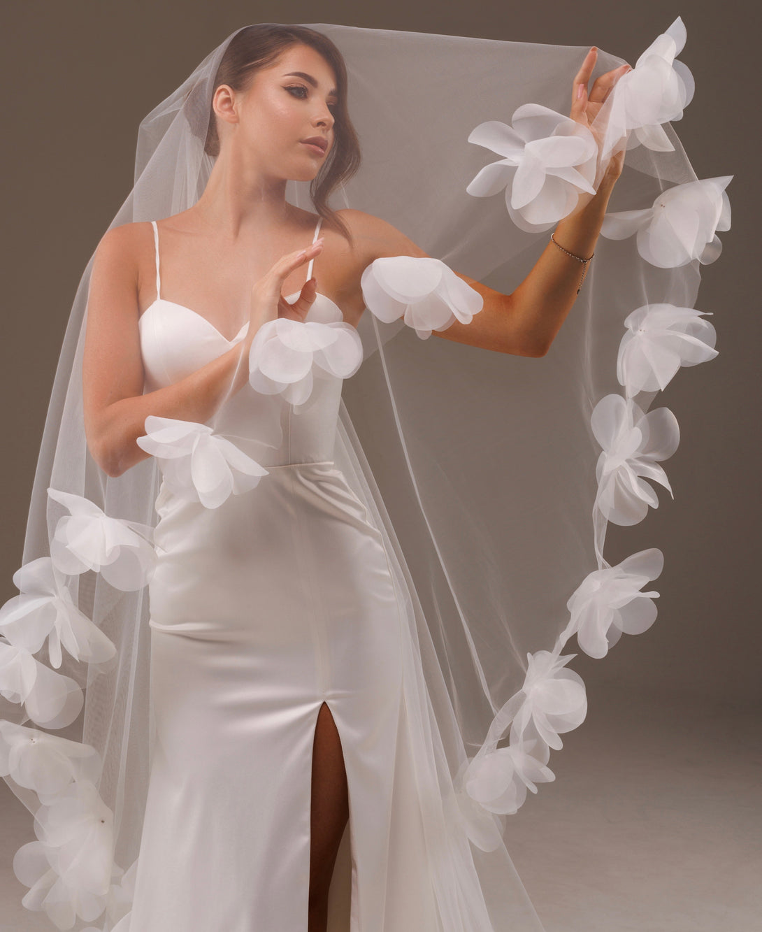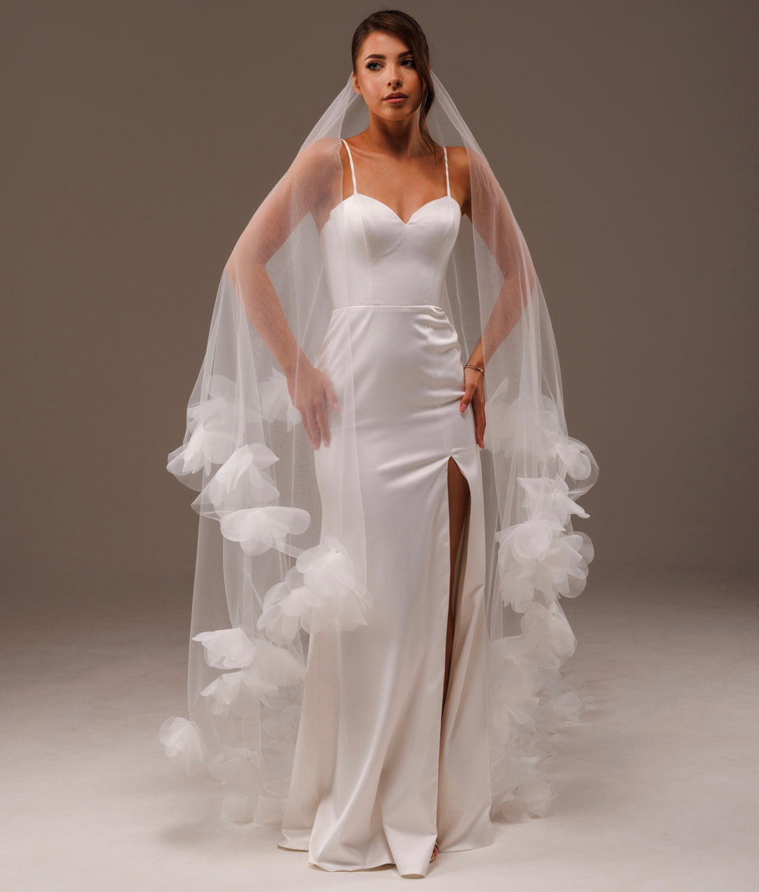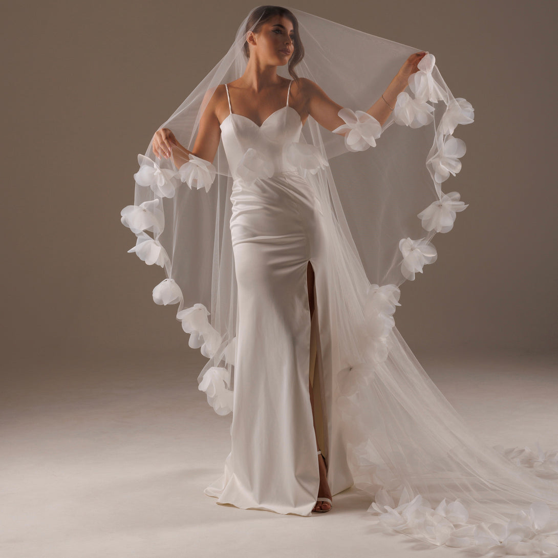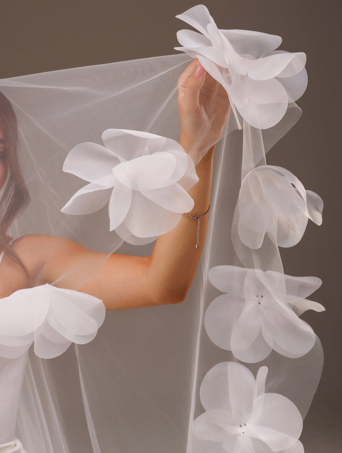 Big Flowered Buds Wedding Veil, 2L3DBFV/V-2513