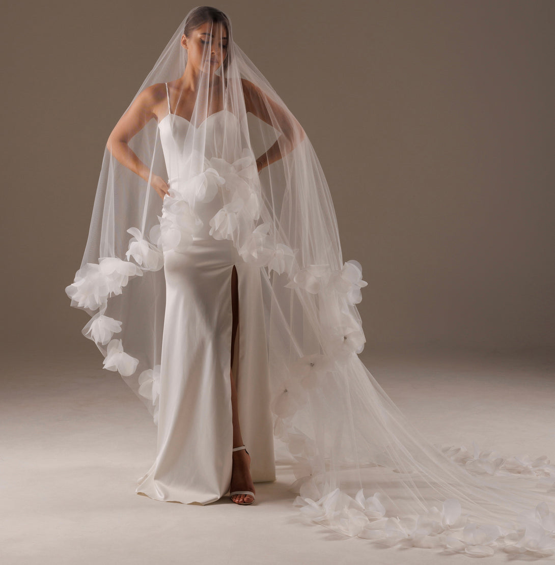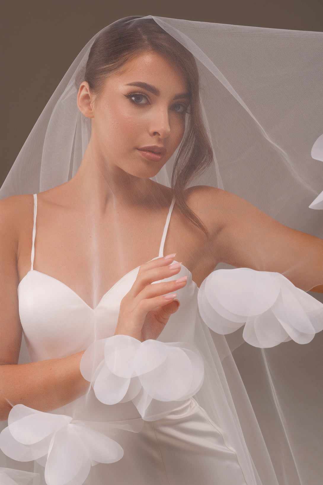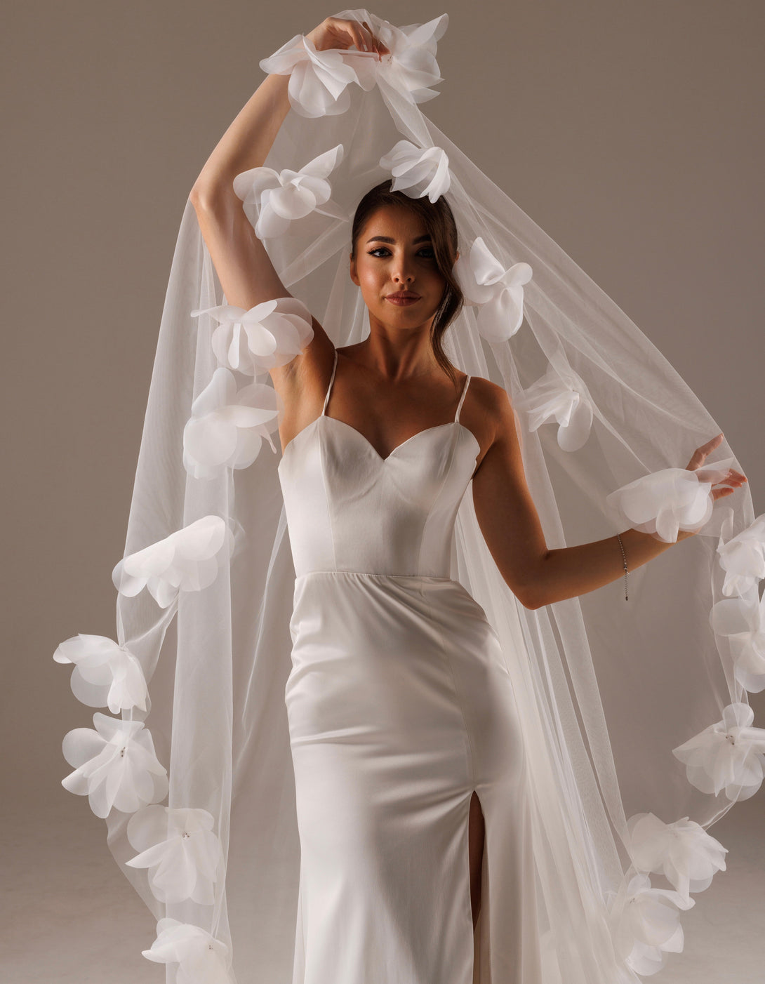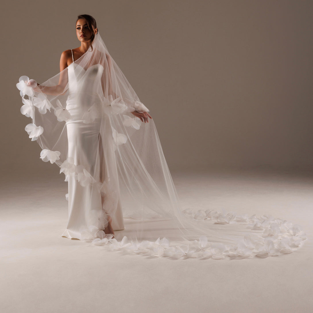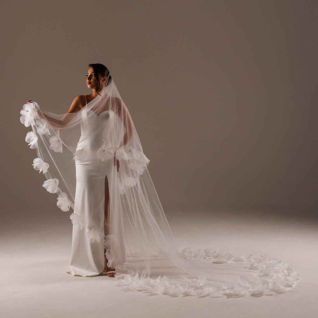 Big Flowered Buds Wedding Veil, 2L3DBFV/V-2513