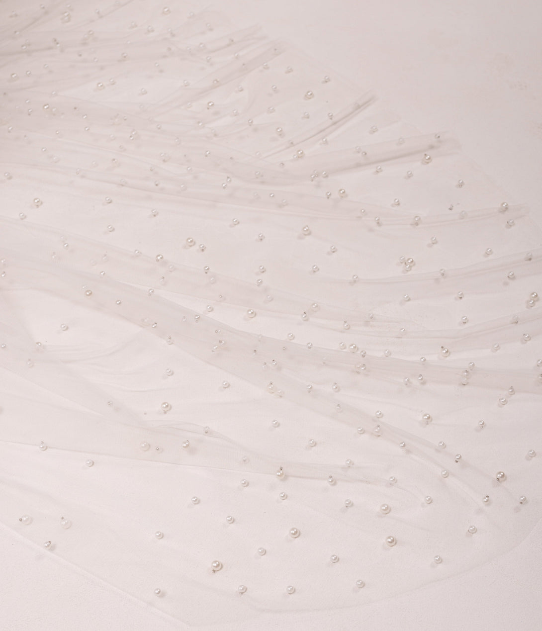 Cascading pearl wedding veil with different pearls and tiny pearl waves from the top to the bottom