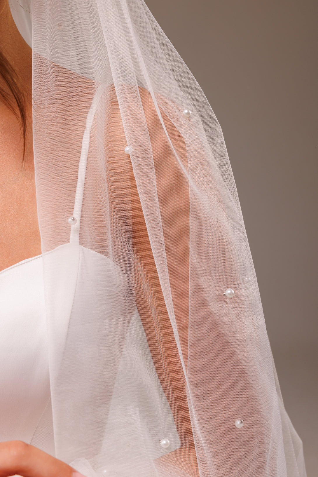 Cascading pearl wedding veil with different pearls and tiny pearl waves from the top to the bottom ✔︎Details: soft tulle one layered classic veil handmade decoration with pearls 5 and 6...